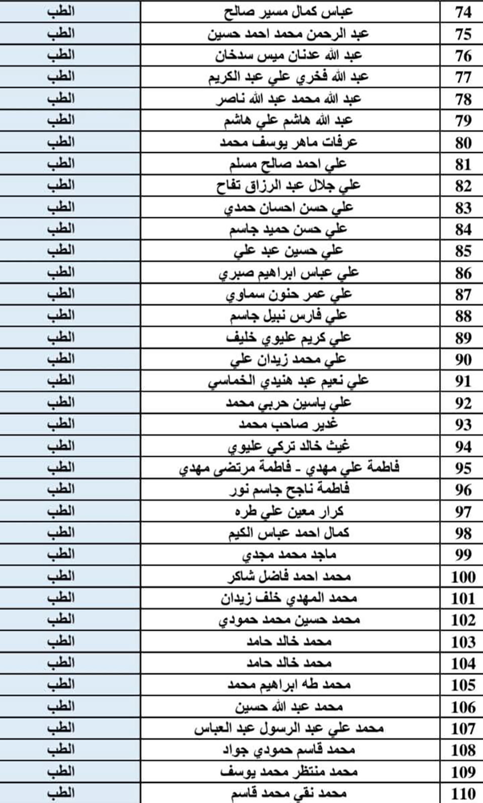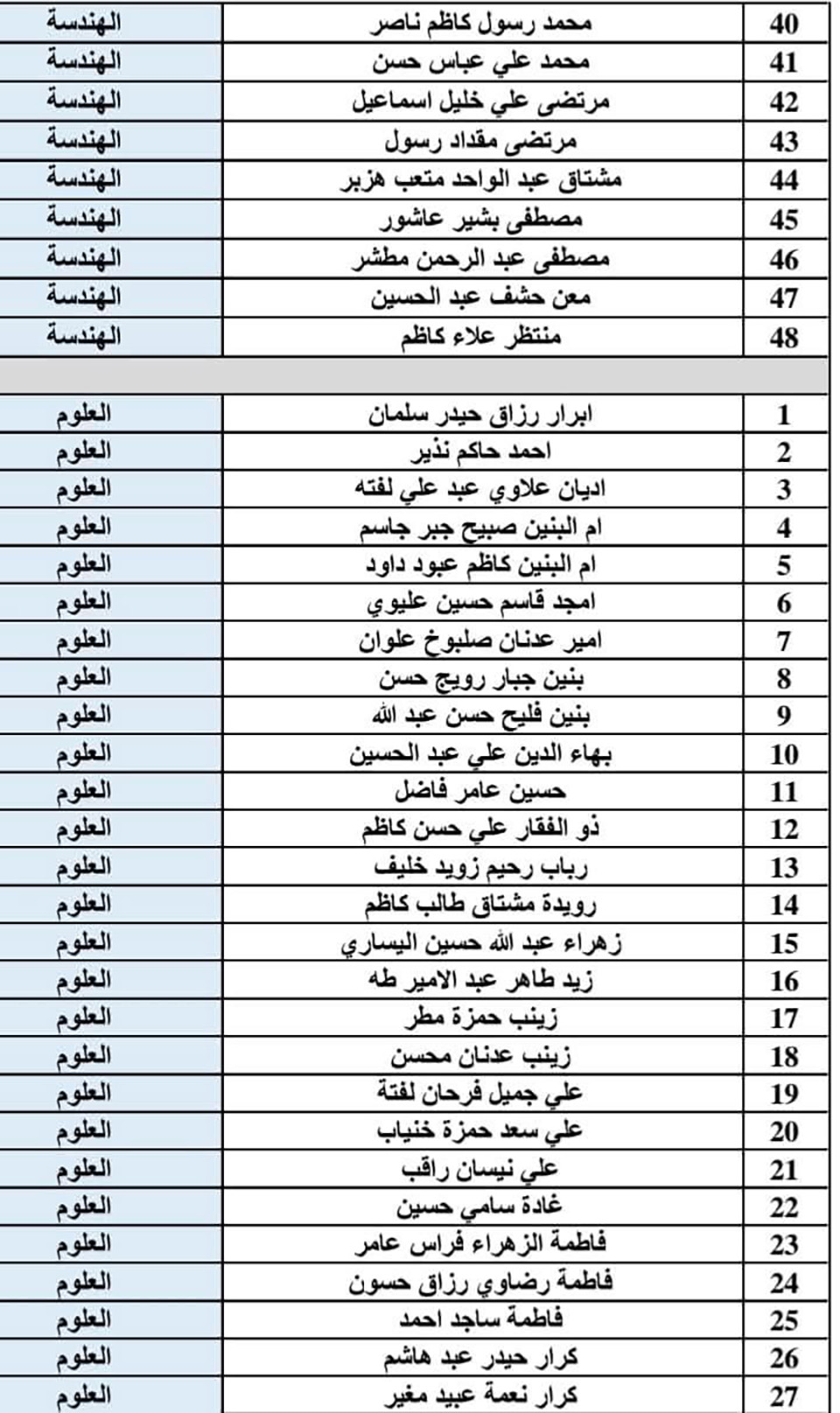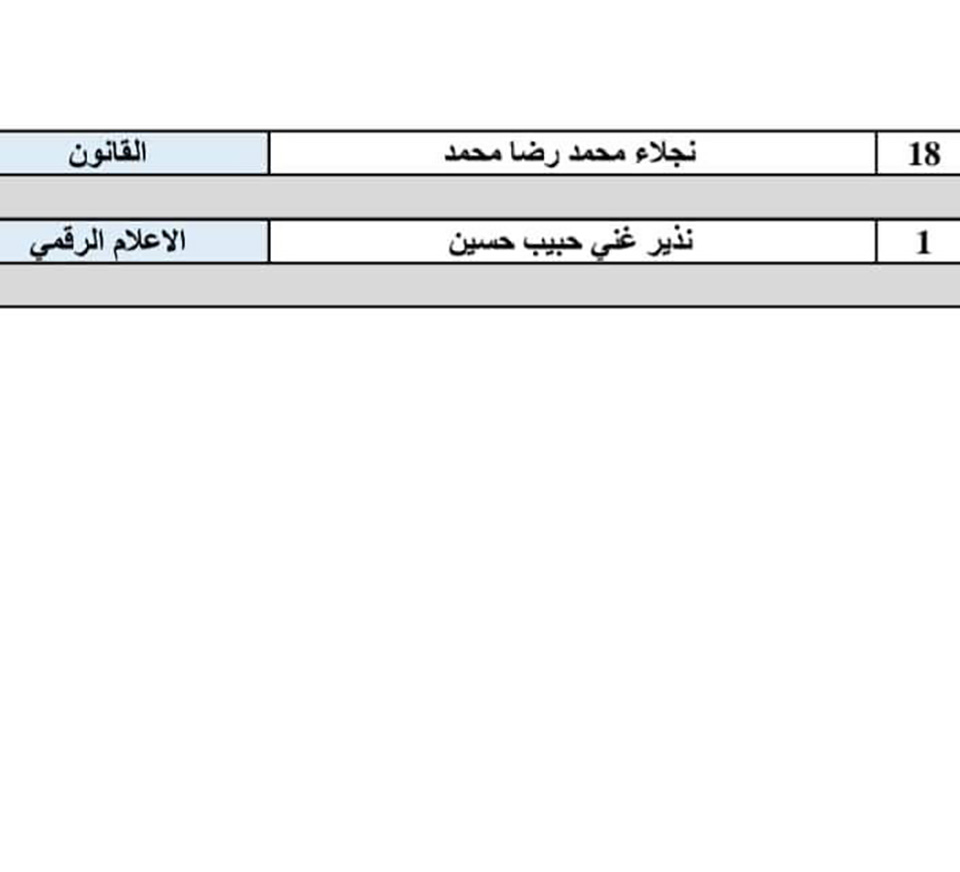 يتعين على الطلبة المدرجة أسماؤهم في القوائم أدناه مراجعة قسم الشؤون القانونية في جامعة وارث الأنبياء (عليه السلام) خلال مدة خمسة أيام من تاريخ الإعلان.