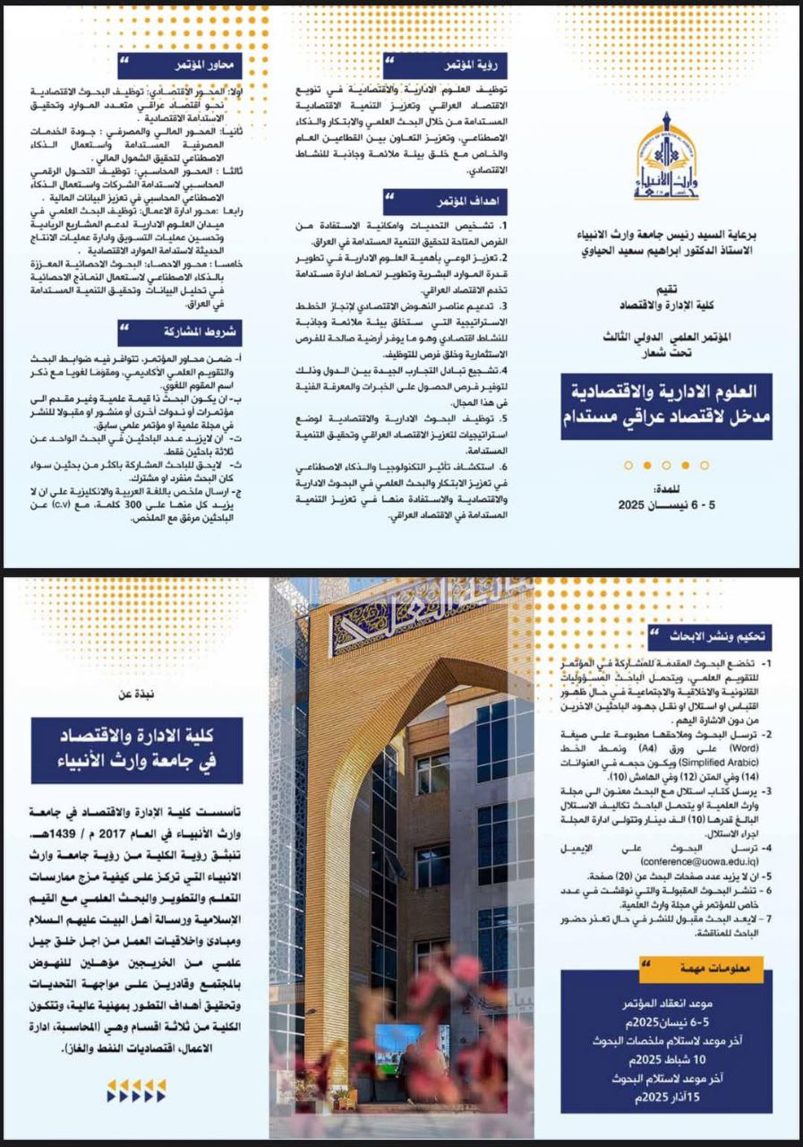 ستقيم كلية الإدارة والاقتصاد مؤتمرها العلمي الدولي الثالث تحت شعار: