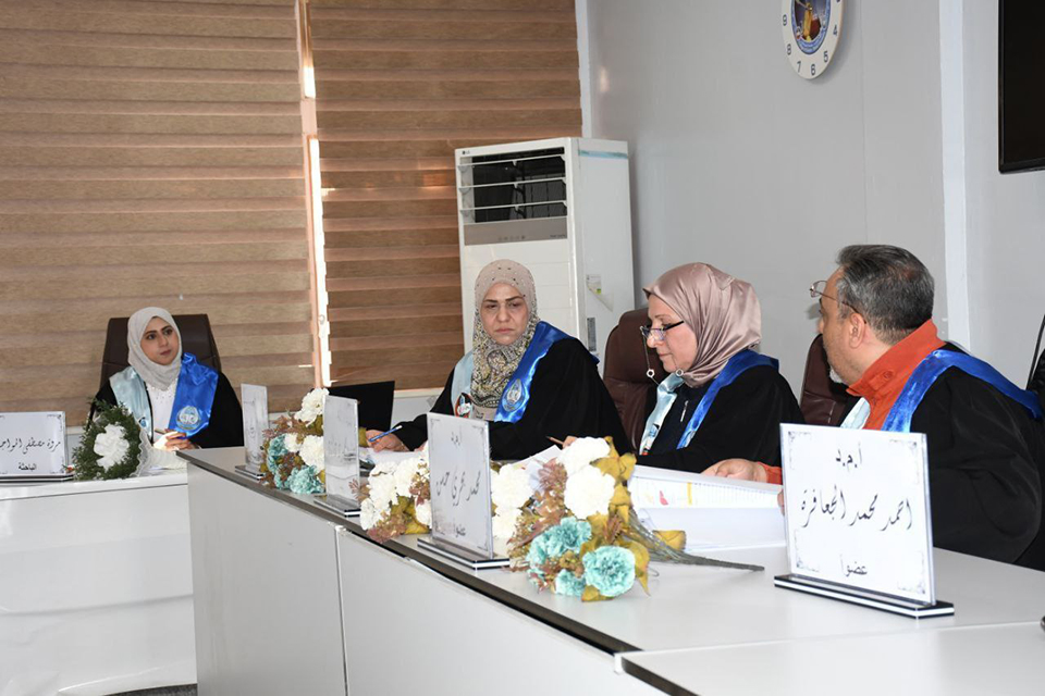 واشترك في لجنة المناقشة عدد من المختصين من كلية العلوم بجامعة الموصل وكلية العلوم الطبية المساندة في جامعة مؤتة الأردنية.