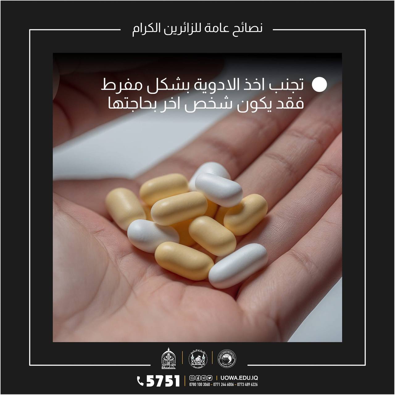 بالتزامن مع زيارة أربعينية الإمام الحسين (عليه السلام) في كربلاء، يُنصح الزائرون بالالتزام بالتعليمات الصحية والخدمية، والحفاظ على البيئة العامة والتعاون مع الفرق التطوعية. وتأتي هذه الإجراءات انسجاماً مع الهدف الثالث من أهداف التنمية المستدامة (الصحة الجيدة والرفاه) عبر حماية صحة الزائرين، والهدف الثاني عشر (الاستهلاك والإنتاج المسؤولان) من خلال تقليل النفايات والحفاظ على الموارد، فضلاً عن دعم الهدف السابع عشر (عقد الشراكات لتحقيق الأهداف) عبر التعاون بين الزائرين والجهات الخدمية والمتطوعين.