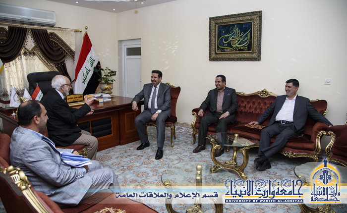 التقى رئيس جامعة وارث الانبياء الاستاذ الدكتور طالب حسن موسى بوفد جامعة العميد برئاسة الاستاذ الدكتور جاسم المرزوقي رئيس الجامعة من اجل فتح افاق التعاون بين الجامعتين للنهوض بالواقع التعليمي نحو الافضل ، وقال المرزوقي اطلعنا ميدانيا على الجامعة ورأينا الرصانة العلمية التي تتمتع بها من كافة النواحي والبنى التحتية وصرح علمي ممتاز ونسعى للتكامل مع جامعتنا واننا في جامعة العميد كلجسد الواحد مع جامعة الوارث