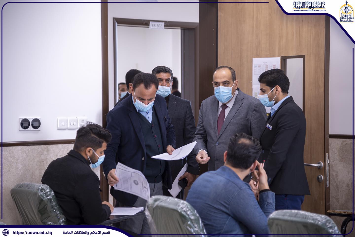 وسط إجراءات وقائية وصحية، بدأت في جامعة وارث الأنبياء(عليه السلام) الامتحانات الحضورية في كليات واقسام الجامعة، حيث اجرى السيد رئيس الجامعة الأستاذ الدكتور إبراهيم الحياوي والسيد المساعد العلمي الأستاذ الدكتور عباس الدعمي جولة تفقدية للاطلاع على سير الامتحانات الحضورية والإلكترونية، و أوعز السيد رئيس الجامعة بتوفير كافة المتطلبات اللوجستية وأكد على اتباع الإجراءات الوقائية للحفاظ على سلامة طلبتنا الأعزاء من خلال حثهم على الالتزام بالإجراءات الوقائية من لبس الكمامة والتعقيم المستمر .