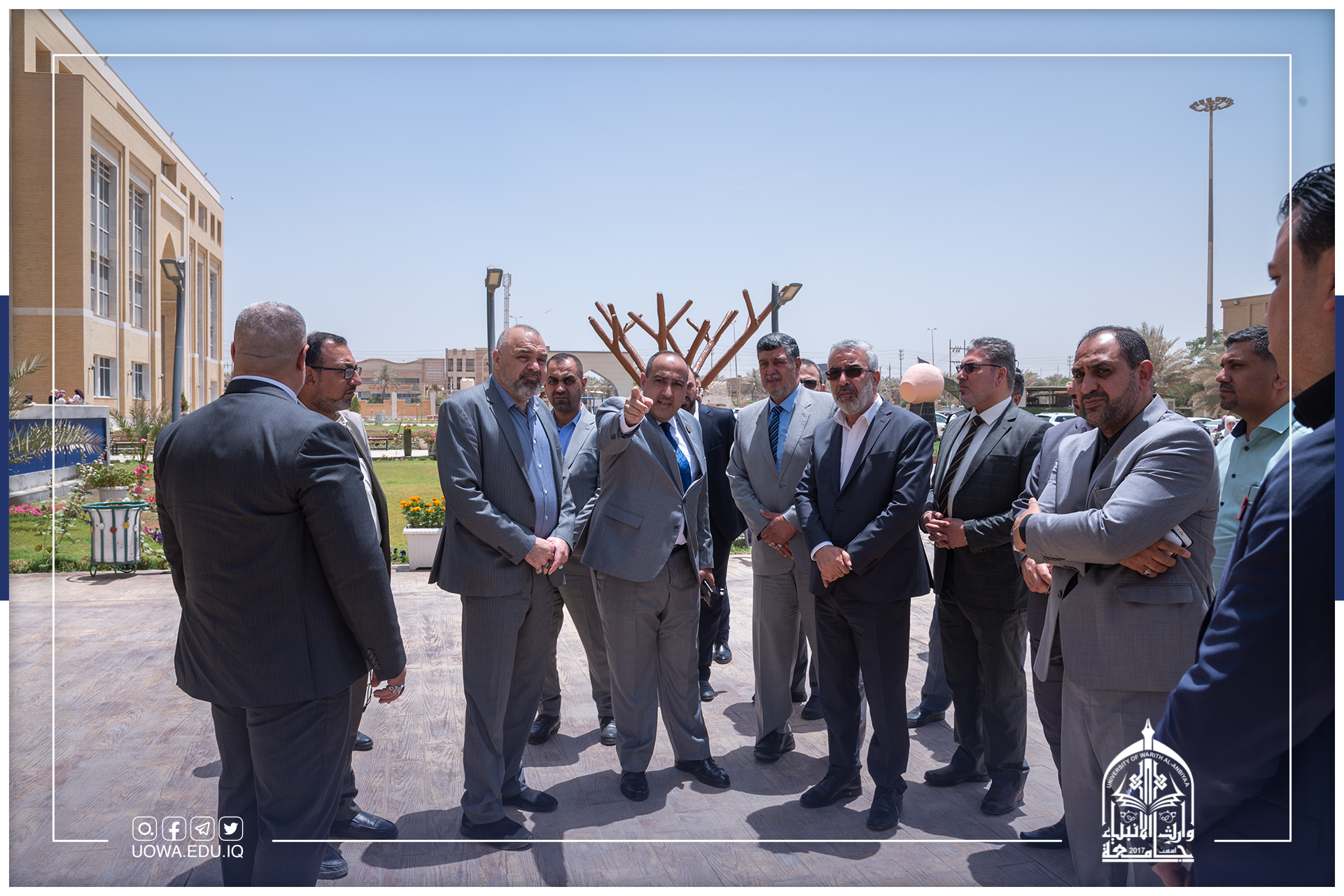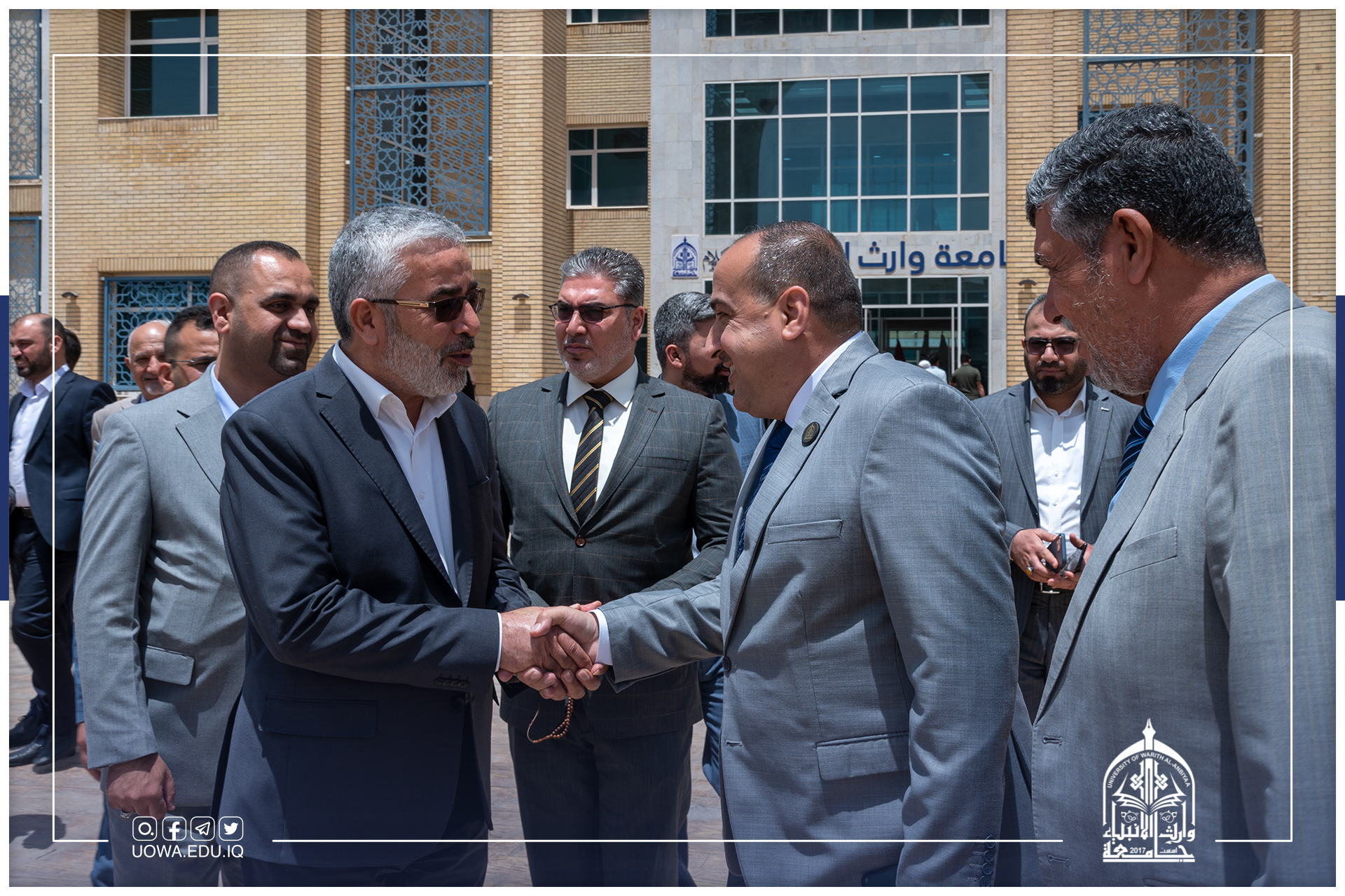 زار جناب الأمين العام للعتبة العلوية المقدسة السيد عيسى الخرسان يرافقه السيد نائب الامين العام للعتبة الحسينية المقدسة الدكتور علاء ضياء الدين، والوفد المرافق لهما جامعة وارث الانبياء(عليه السلام)، وكان باستقبالهما السيد رئيس الجامعة الاستاذ الدكتور ابراهيم الحياوي والسادة مساعدي رئيس الجامعة وعدد من عمداء الكليات، إذ اطلع جناب الأمين العام على صرح الجامعة وأعرب عن اعجابة الشديد بما تمتلكه من امكانيات مادية وبشرية