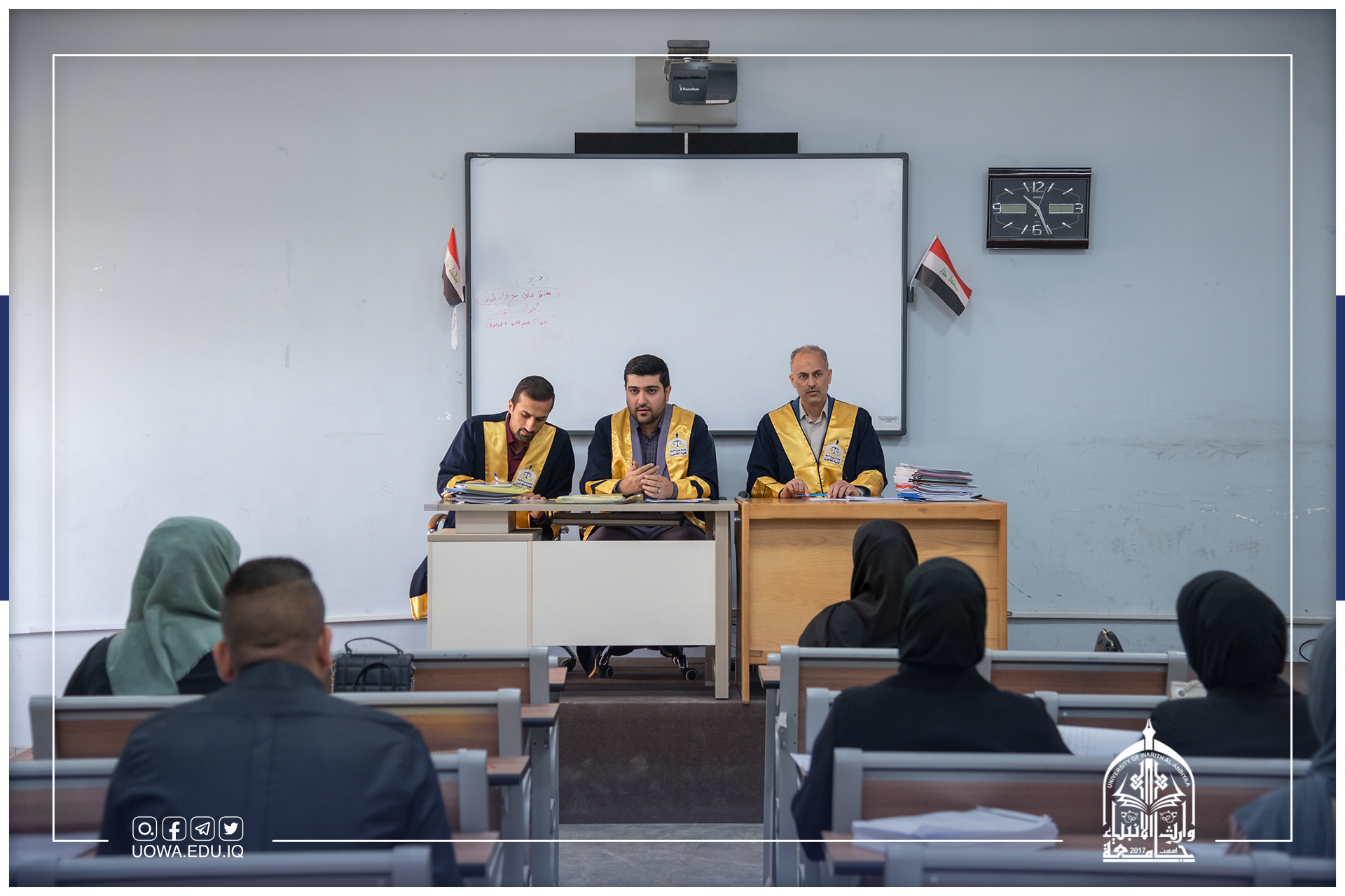 بالصور.. عمادة كلية القانون في جامعة وارث الانبياء (عليه السلام) تناقش بحوث تخرج طلبة المرحلة الرابعة، بحضور لجنة علمية مشكلة من قبل عمادة الكلية للإشراف على المناقشة.