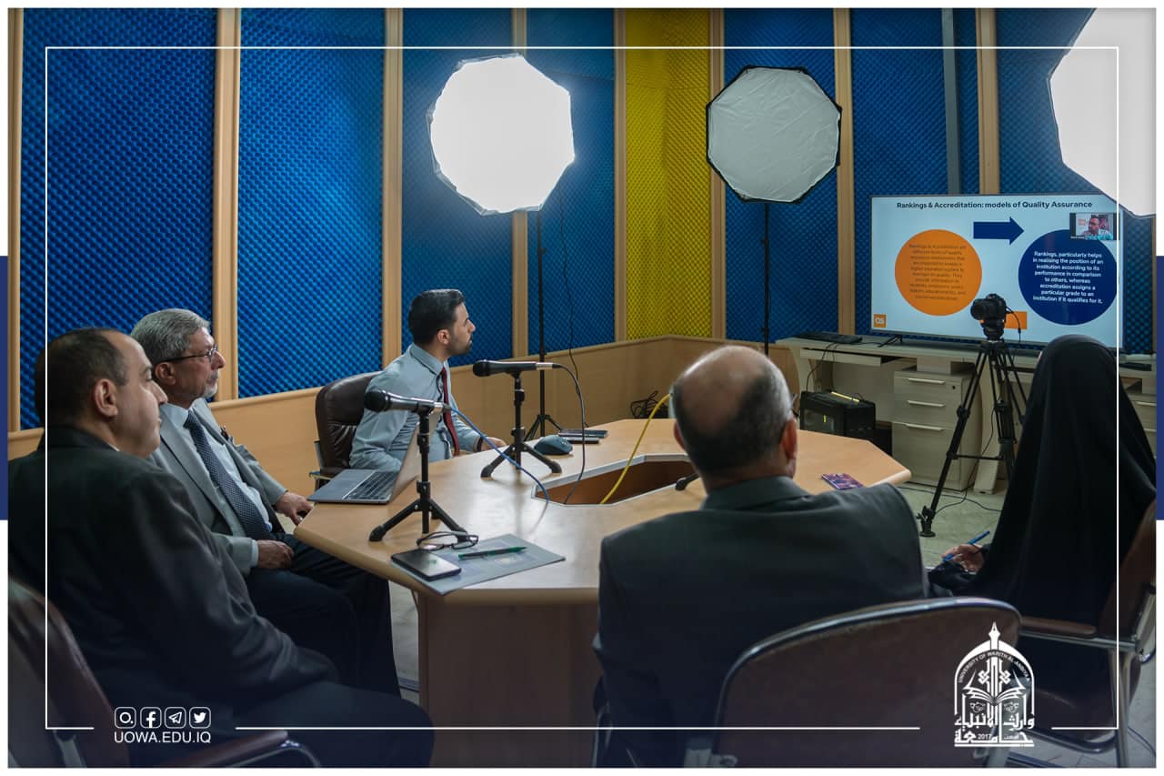 برعاية السيد رئيس الجامعة الأستاذ الدكتور إبراهيم سعيد الحياوي اقام قسم ضمان الجودة والأداء الجامعي بالتعاون مع قسم الاعلام والعلاقات اجتماعاً تنسيقياً مع مؤسسة Quacquarelli Symonds للتصنيفات العالمية حيث تم مناقشة متطلبات التصنيف المختلفة والخدمات التي تقدمها المؤسسة، يأتي الاجتماع بالتزامن مع الجهود التي تذلها الجامعة لتضمين المتطلبات التفصيلية للتصنيفات العالمية ضمن خططها الاستراتيجية.