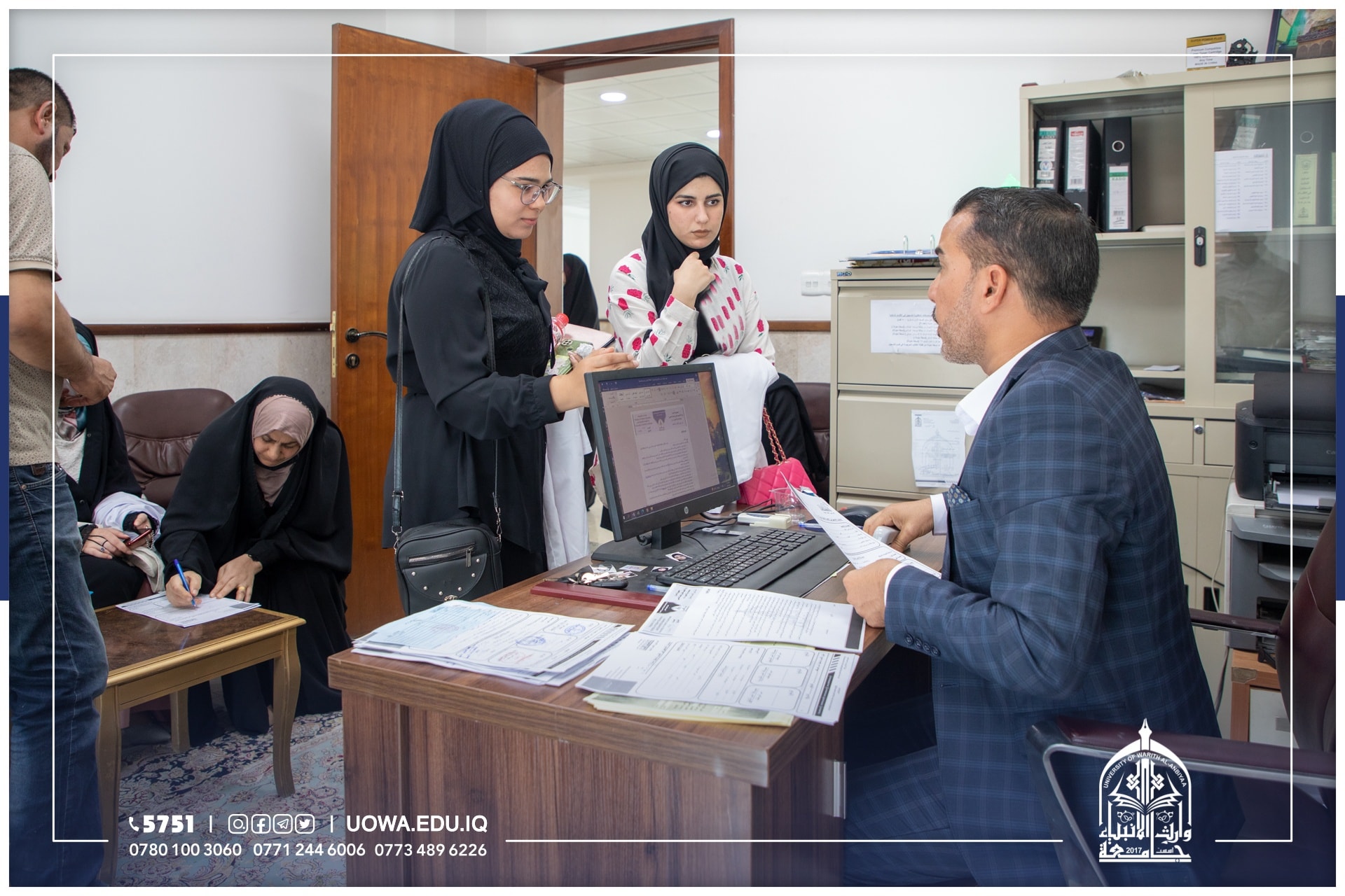 يستمر قسم شؤون الاقسام الداخلية في جامعة وارث الانبياء(عليه السلام) باستقبال الطلبة الاعزاء الراغبين بالتسجيل على الاقسام الداخلية.