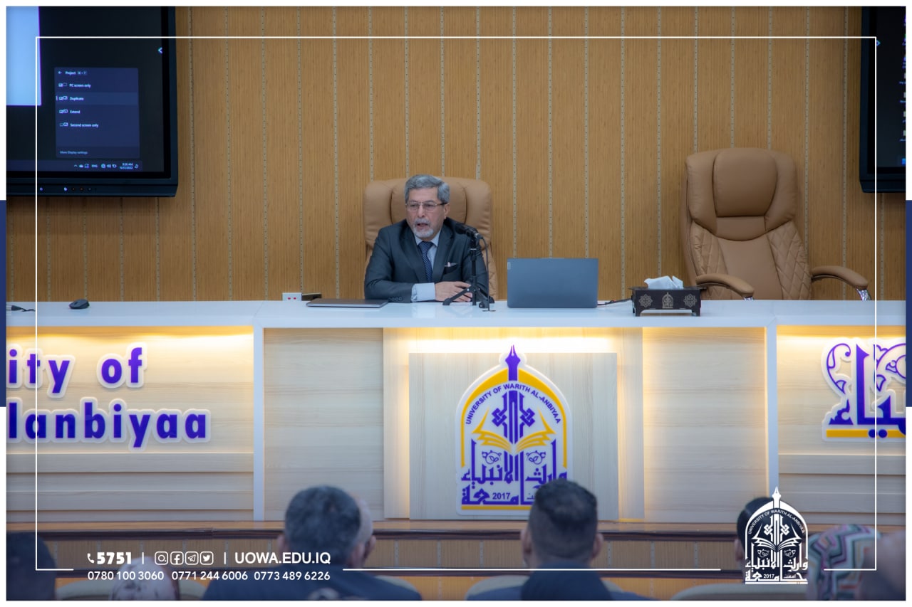 بحضور السيد رئيس الهيئة المؤسسة الاستاذ الدكتور نوفل الاعرجي، وقدم الورشة الوزارية الاستاذ الدكتور صبيح المشهداني المشرف على مجموعة التطوير الرقمي في جامعة وارث الانبياء(عليه السلام).