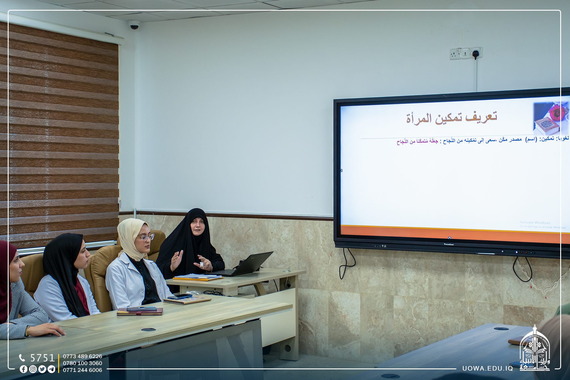ندوة علمية يقيمها قسم الشؤون العلمية /وحدة تمكين المرأة بالتعاون مع كلية الطب بعنوان(تمكين المرأة من منظور اسلامي) قدمها م.م صباح الجبوري والدكتورة عبير نوري قحطان