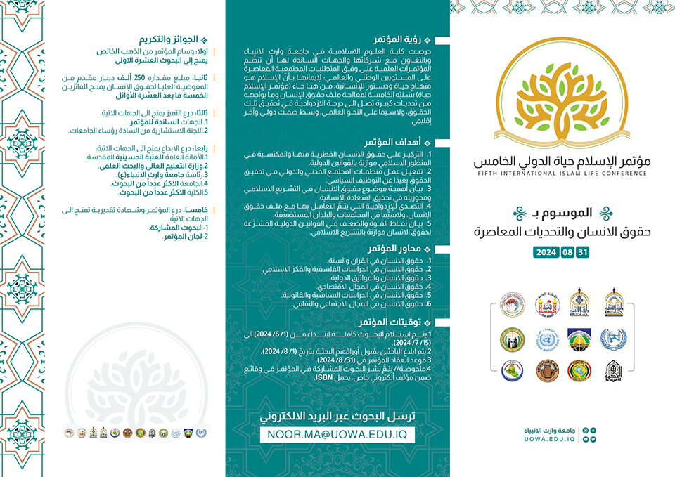 الذي تقيمه كلية العلوم الاسلامية في جامعة وارث الانبياء(عليه السلام) ، والذي سينعقد بتاريخ من 31-8-2024.