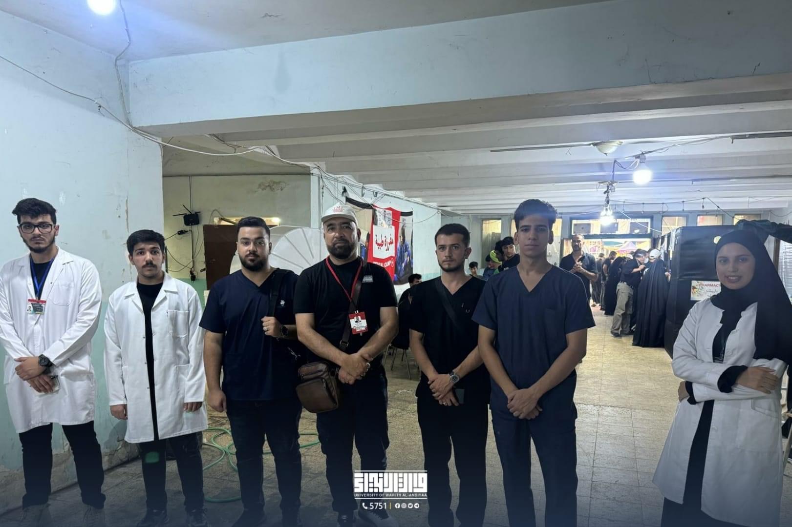 بإشراف عميد كلية الطب طلبة الكلية في جامعة وارث الأنبياء عليه السلام تقدم الخدمات الطبية بالتعاون مع مؤسسات العتبة الحسينية المقدسة ومراكز دولية خلال فترة الزيارة اضافة الى تلقي التدريبات اللازمة لطب الحشود.