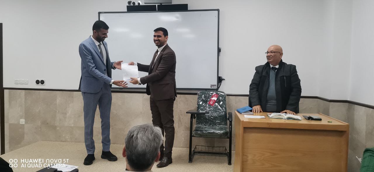 عميد كلية الادارة والاقتصاد يترأس لجنة مناقشة اطروحة الدكتوراه
