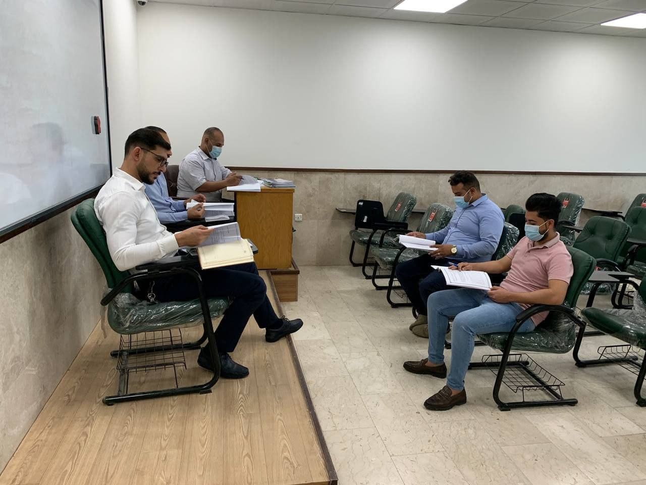 بأشراف السيد عميد كلية الادارة والاقتصاد الاستاذ الدكتور عواد الخالدي وم.د فهد مغيمش الشمري رئيس قسم ادارة الاعمال وم.د هبة الله مصطفى السيد علي رئيس قسم المحاسبة، جرت مناقشة طلبة المرحلة الرابعة لكلية الادارة والاقتصاد ولقسميها العلميين (المحاسبة - ادارة الاعمال) وللدراسيتين الصباحي والمسائي ابتداءً من يوم الثلاثاء المصادف 29/6/2021
