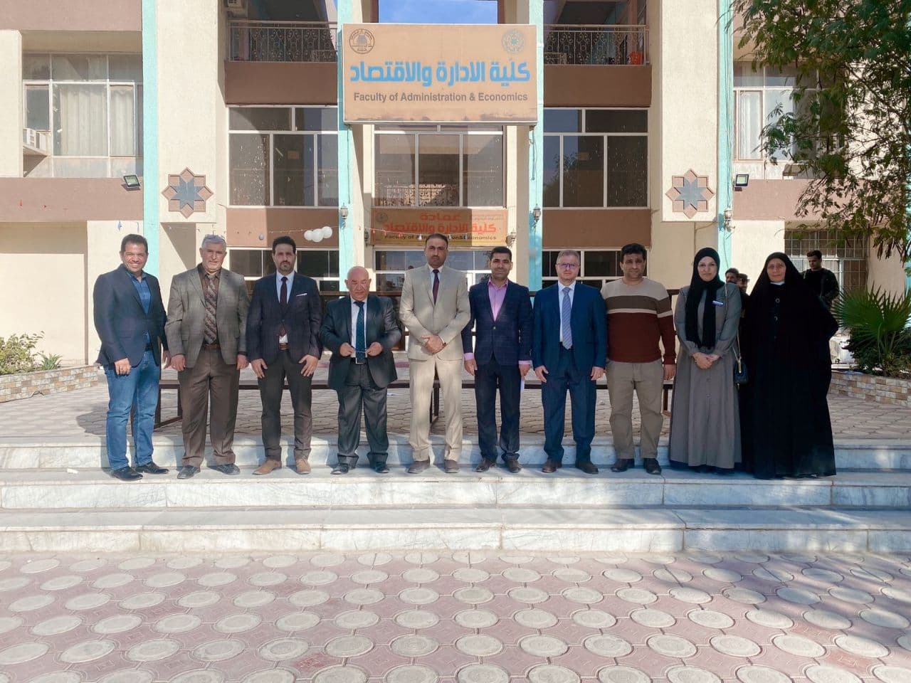 في إطار التعاون العلمي و الأكاديمي المشترك، قام السيد عميد كلية الادارة والاقتصاد أ.د عواد الخالدي المحترم والدكتورة هبة الله رئيس قسم المحاسبة ، والدكتور محمد مجيد رئيس قسم إدارة الاعمال والدكتورة نضال المالكي مسؤولة اللجنة العلمية؛ في زيارة رسمية لكلية الإدارة والاقتصاد في جامعة الكوفة؛ حيث اجتمعوا مع رؤساء الاقسام في جامعة الكوفة لقسمي المحاسبة و قسم ادارة الاعمال وممثلي اللجان العلمية في كلية الادارة والاقتصاد جامعة الكوفة ، في صباح يوم الثلاثاء المصادف 30/11/2021 ، حيث تم الاتفاق على اليات التعاون المشترك بخصوص بنود اتفاق التوأمة ومدى أهميتها في تبادل الخبرات عبر كتابة البحوث العلمية المشتركة وعقد المؤتمرات والندوات بما يخدم المصلحة العامة ويسهم في دعم وتطوير العملية التعليمية لكلتا الجامعتين.