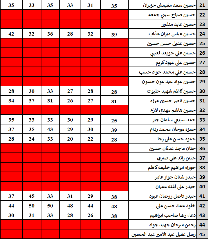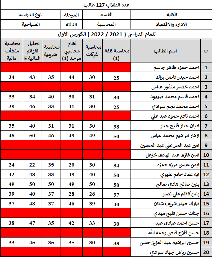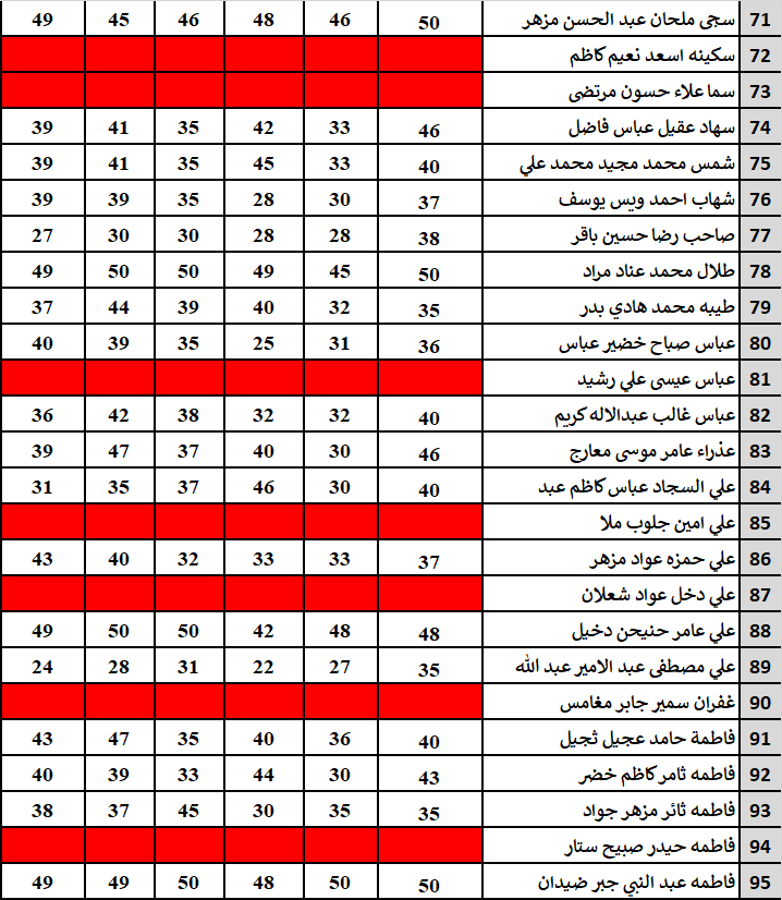 في حالة عدم ورود اسم الطالب ضمن قائمة السعي، يرجى مراسلة مقرر القسم "دكتور علي كيشوان"، علما ان حقول الدرجات الفارغة امام اسم الطالب تعني ان درجات الطالب قد تم "حجبها".