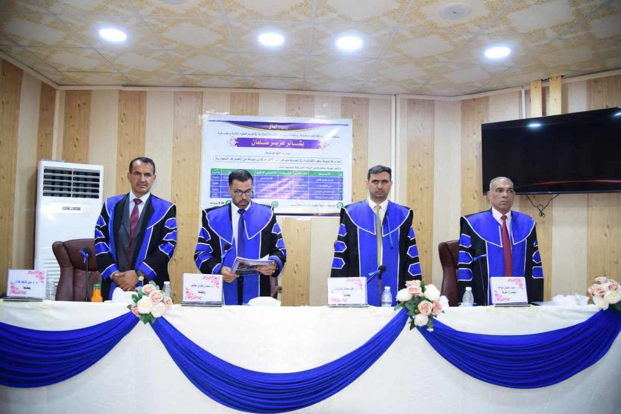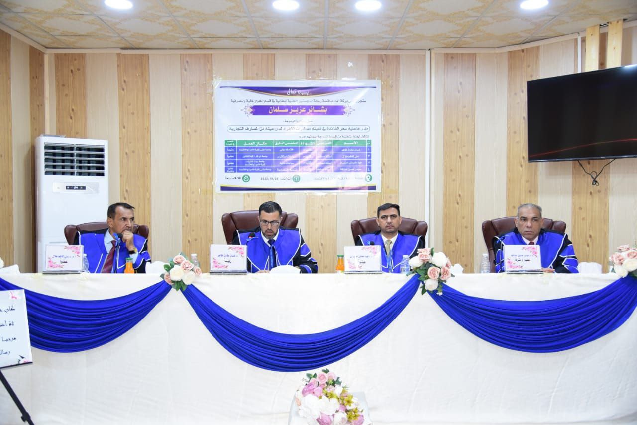 شارك الاستاذ المساعد الدكتور فهد مغيمش حزيران الشمري / معاون عميد كلية الادارة والاقتصاد/ جامعة وارث الأنبياء (عليه السلام) ، كعضو في لجنة مناقشة رسالة الماجستير الموسومة (مدى فاعلية سعر الفائدة في تعبئة مدخرات الأفراد لدى عينه من المصارف التجارية) في جامعة المثنى / كلية الادارة والاقتصاد لطالبة الدراسات العليا (بشائر عزيز سلمان) يوم الثلاثاء الموافق ٢٠٢٢/١٠/٢٥.