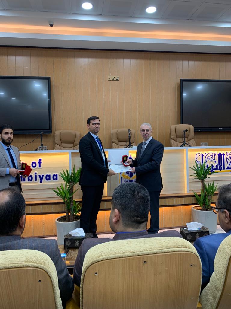 اختيار الاستاذ المساعد الدكتور فهد مغيمش الشمري معاون عميد كلية الإدارة والاقتصاد عضواً في اللجنة العلمية ورئيس الجلسة الخاصة بالمحور الإداري والاقتصادي للمؤتمر الوطني الأول بالتنمية والتطوير نرتقي والموسوم أثر المنظومة القيمية في بناء المجتمع وتنميته الذي أقيم في كلية العلوم الإسلامية جامعة وارث الأنبياء في يوم السبت  المصادف ٢٤ /١٢/ ٢٠٢٢ ومن جانبه قدم عميد الكلية كتاب شكر وتقدير لجهوده المبذولة