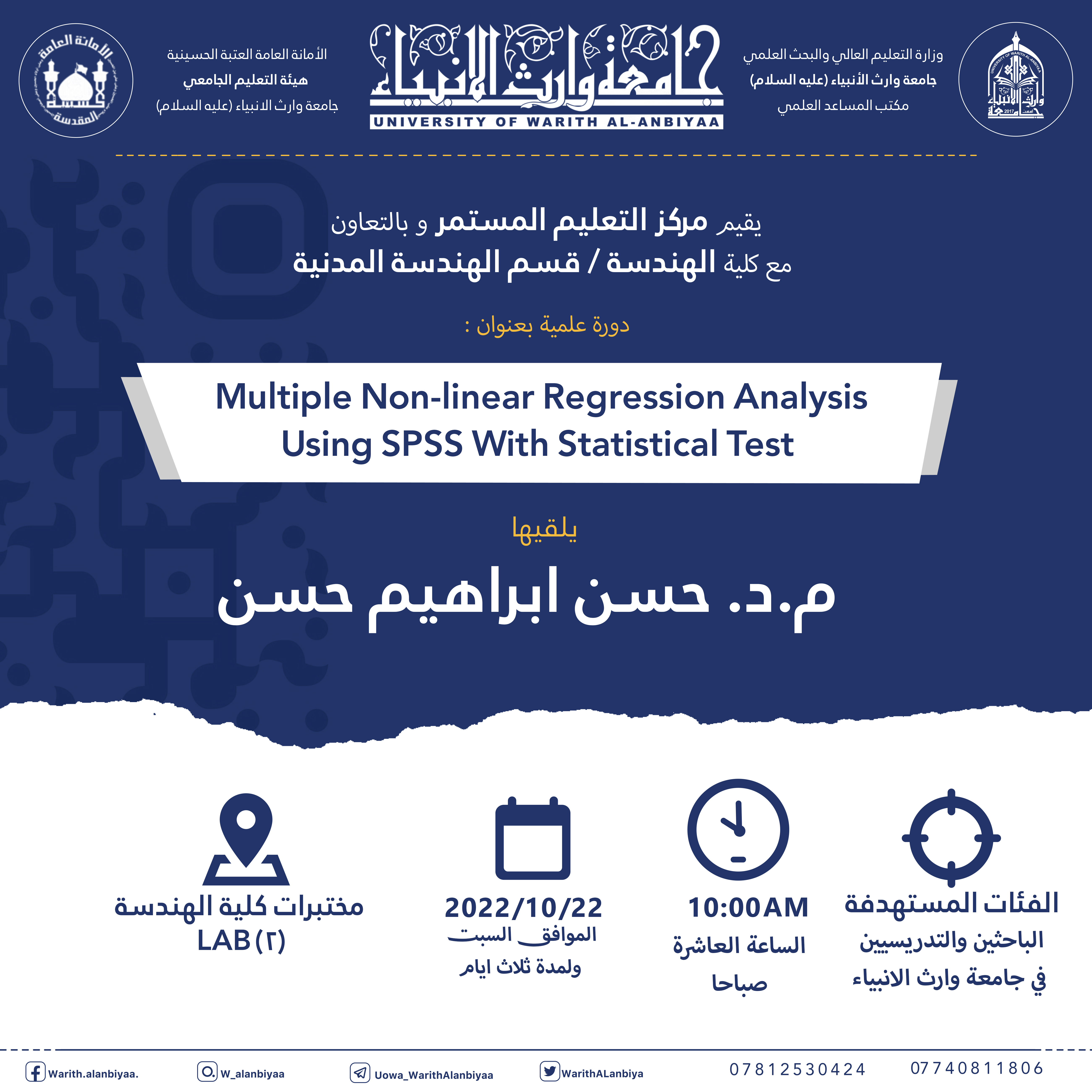 اعلان اقامة دورة بعنوان Multiple Non-Linear Regression Analysis Using SPSS With Statistical Test