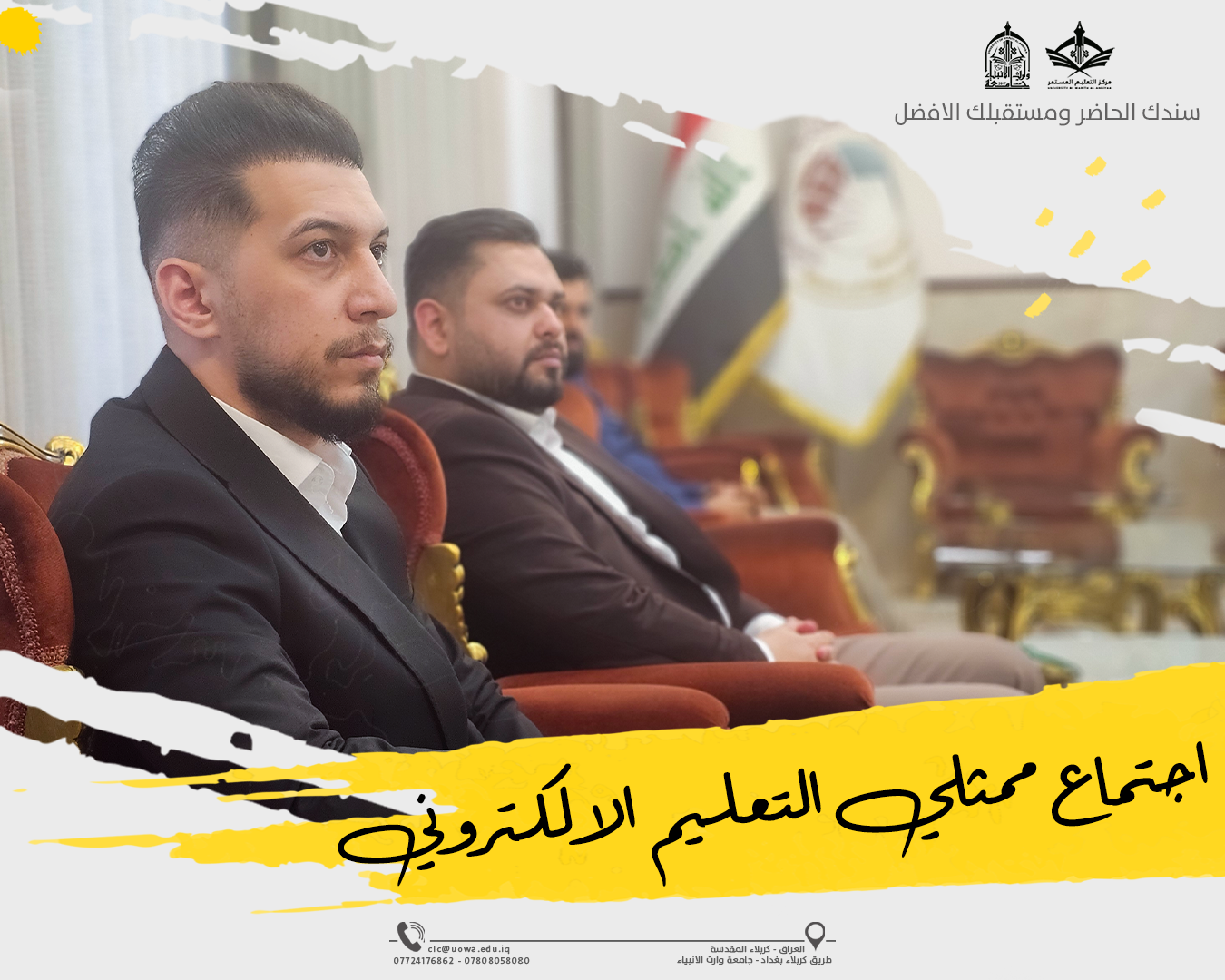عقد مركز التعليم المستمر في جامعة وارث الانبياء (عليه السلام) اجتماعه الخاص بممثلي التعليم الالكتروني عن الكليات في الجامعة (الثلاثاء - 8/10/2024)، جرى خلال الاجتماع تبيان الية التعليم الالكتروني المتبعة في الجامعة والتطورات القائمة لتحسين العملية التعليمة للعام الدراسي 2024-2025.