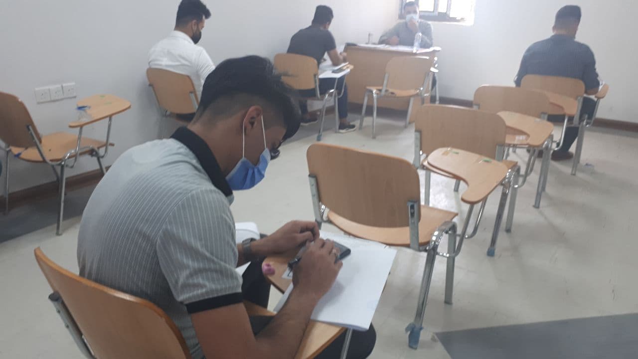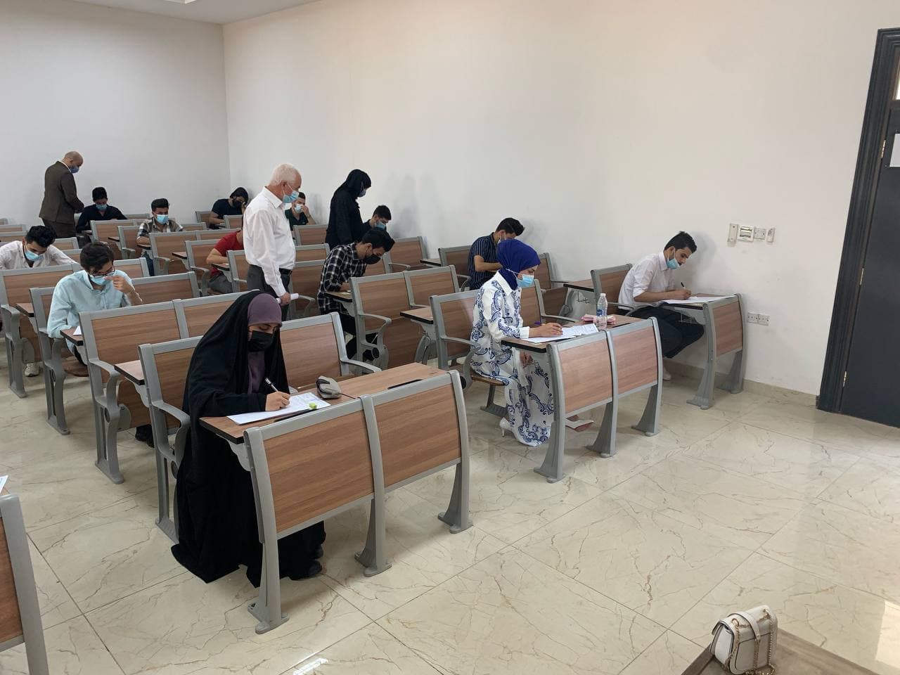 جانب من القاعات الامتحانية لقسم التكييف والتبريد في جامعه وارث الأنبياء ليوم الثلاثاء المصادف ٦ / ٤ / ٢٠٢١ والذي يعكس صوره مثاليه لتطبيق التباعد الاجتماعي والالتزام بارتداء الكمامات تنفيذا لقرارات خلية الأزمة لمنع تفشي فيروس كورونا.