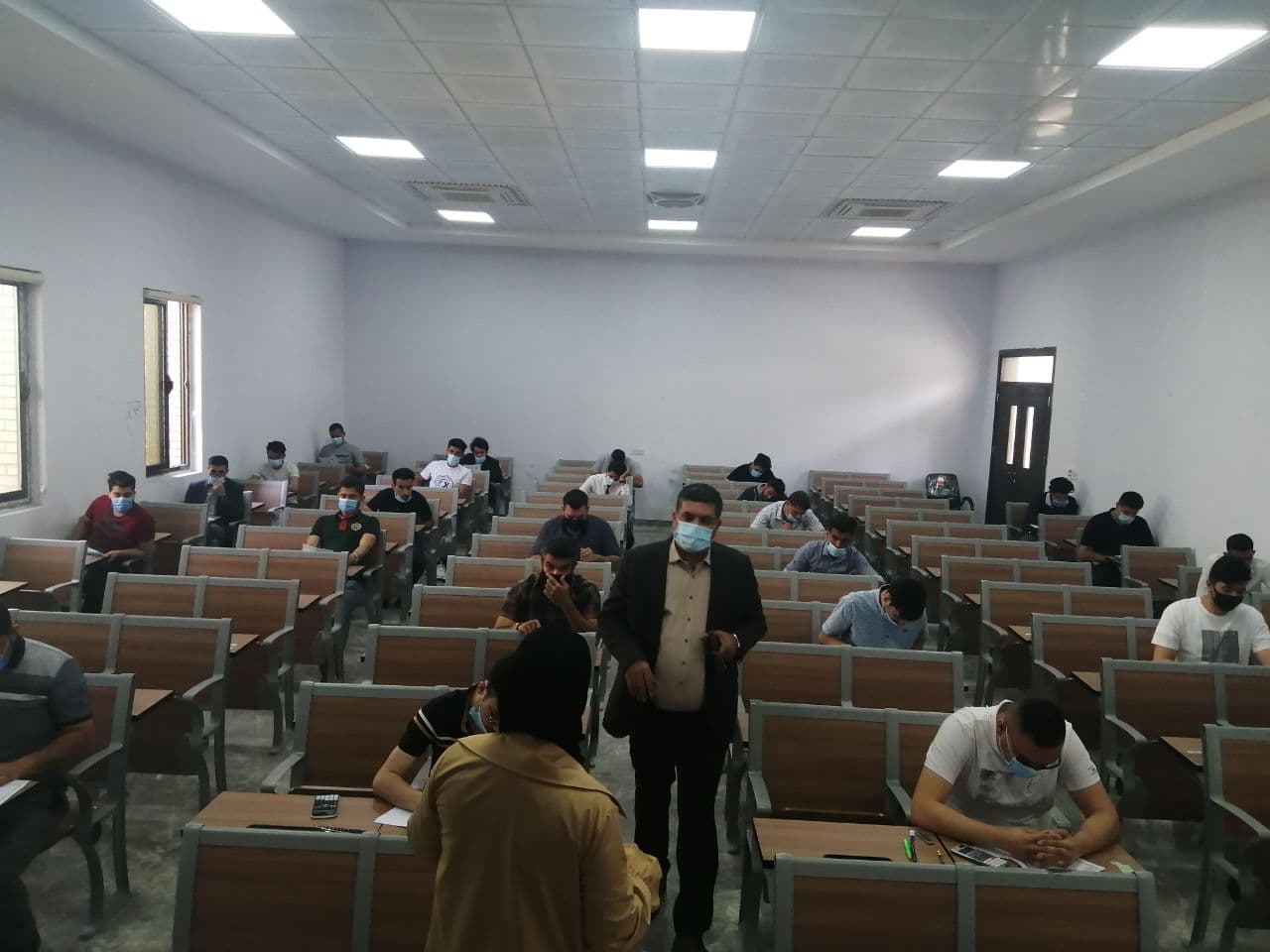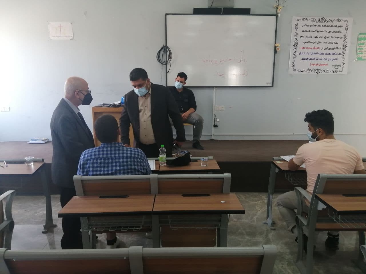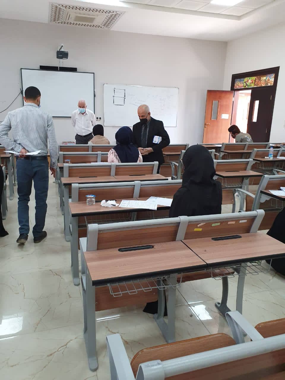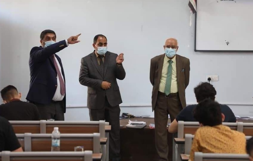 تفقد السيد عميد كُلْيَة الهندسة الدكتور رؤوف محمد القاعات الامتحانية أثناء اداء طلبة كُلْيَة الهندسة الامتحانات النهائية للفصل الأول - الدور الأول حرصاً منه على أجراء الامتحانات وفق اجراءات وقائية مشددة وحسب توجيهات اللجنة العليا للصحة و السلامة الوطنية.