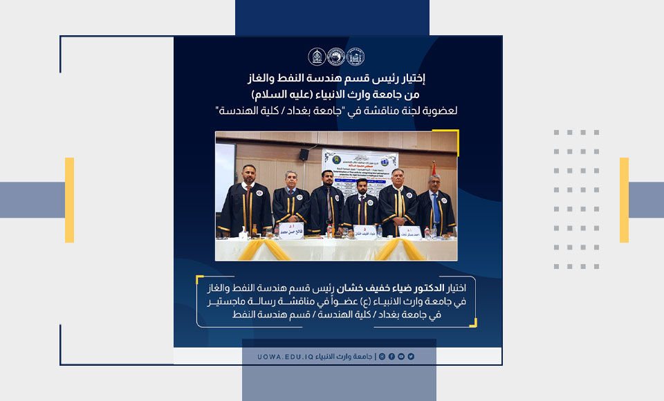 رئيس قسم هندسة النفط والغاز ينضم إلى لجنة مناقشة رسالة ماجستير بجامعة بغداد