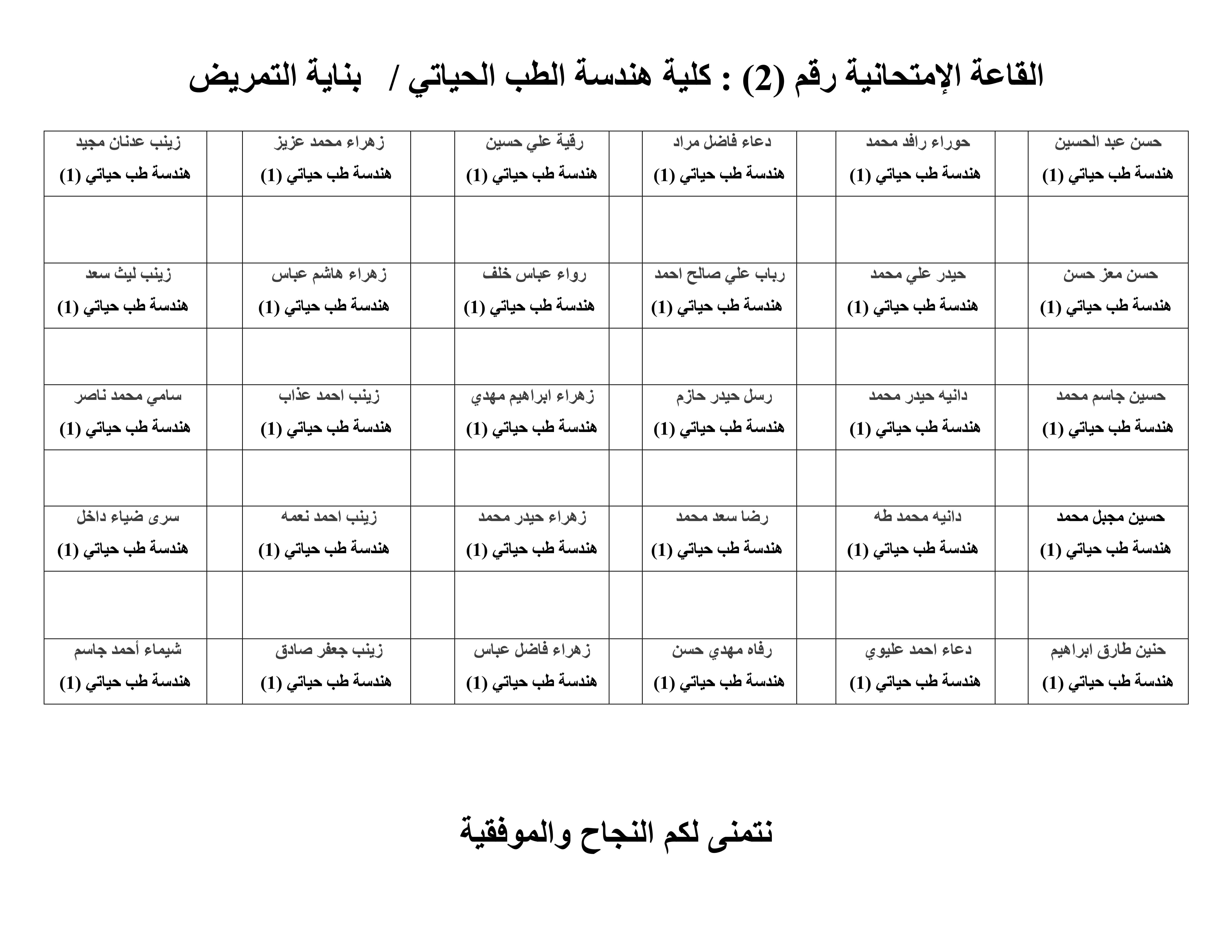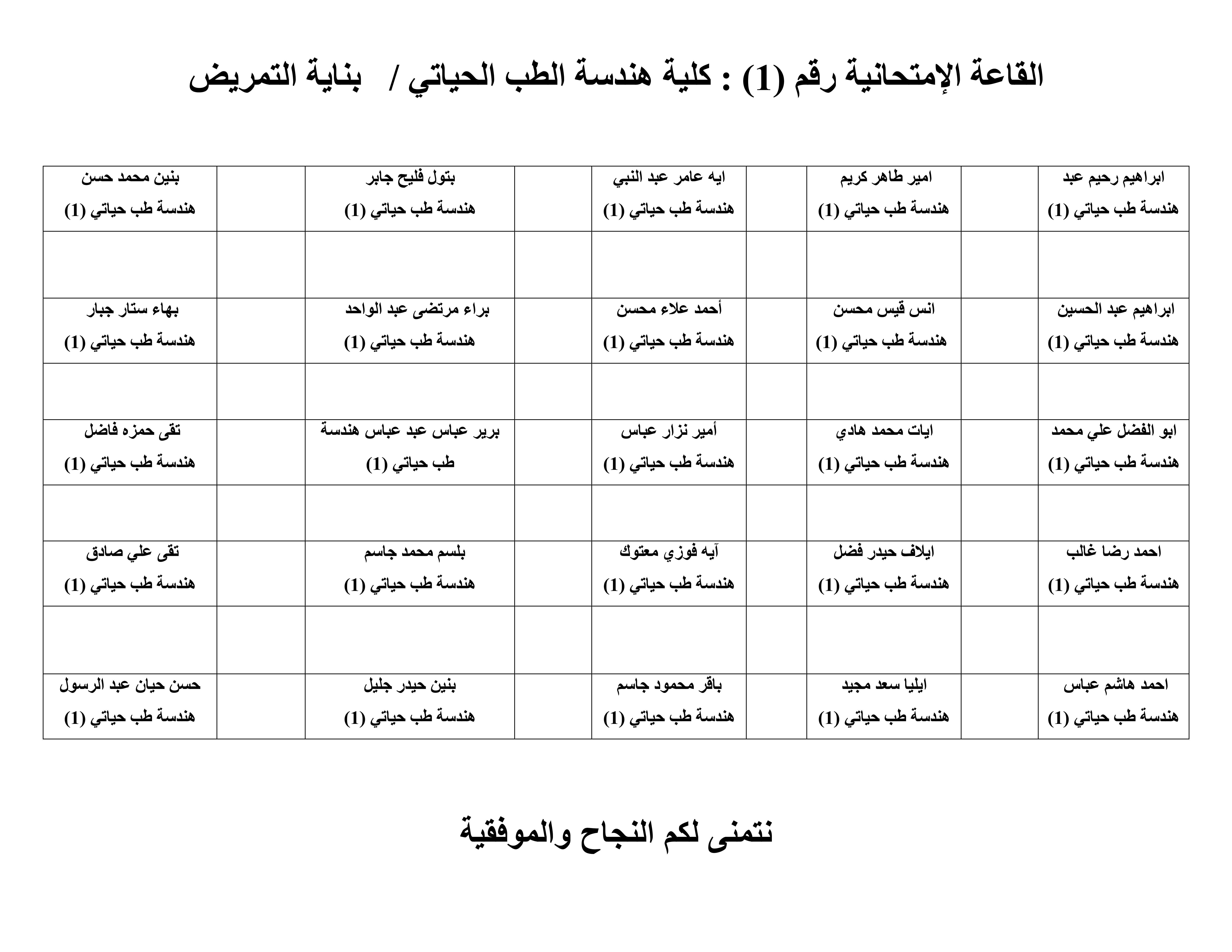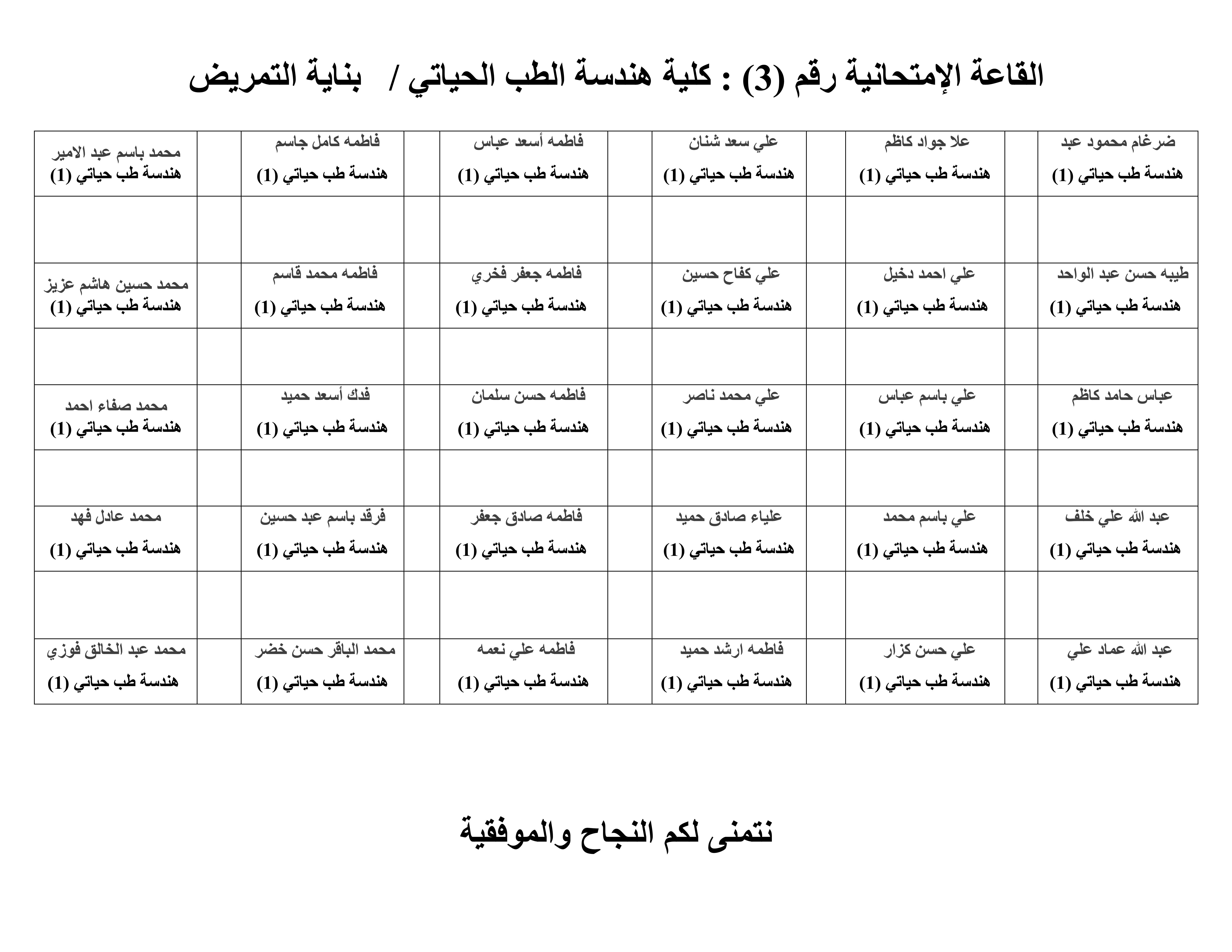 خارطة القاعات الامتحانية للامتحانات الحضورية لطلبة قسم هندسة الطب الحياتي/ المرحله الاولى