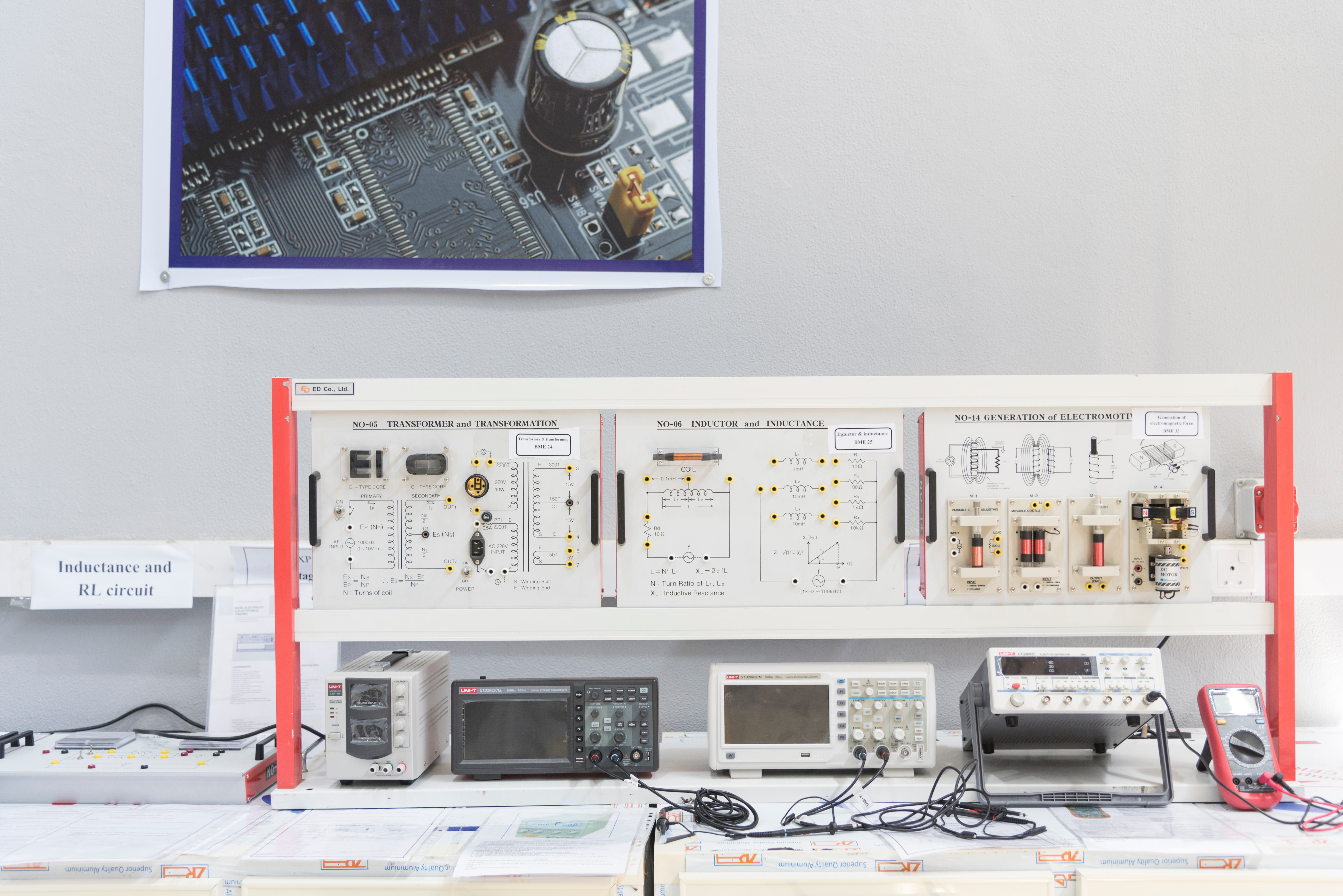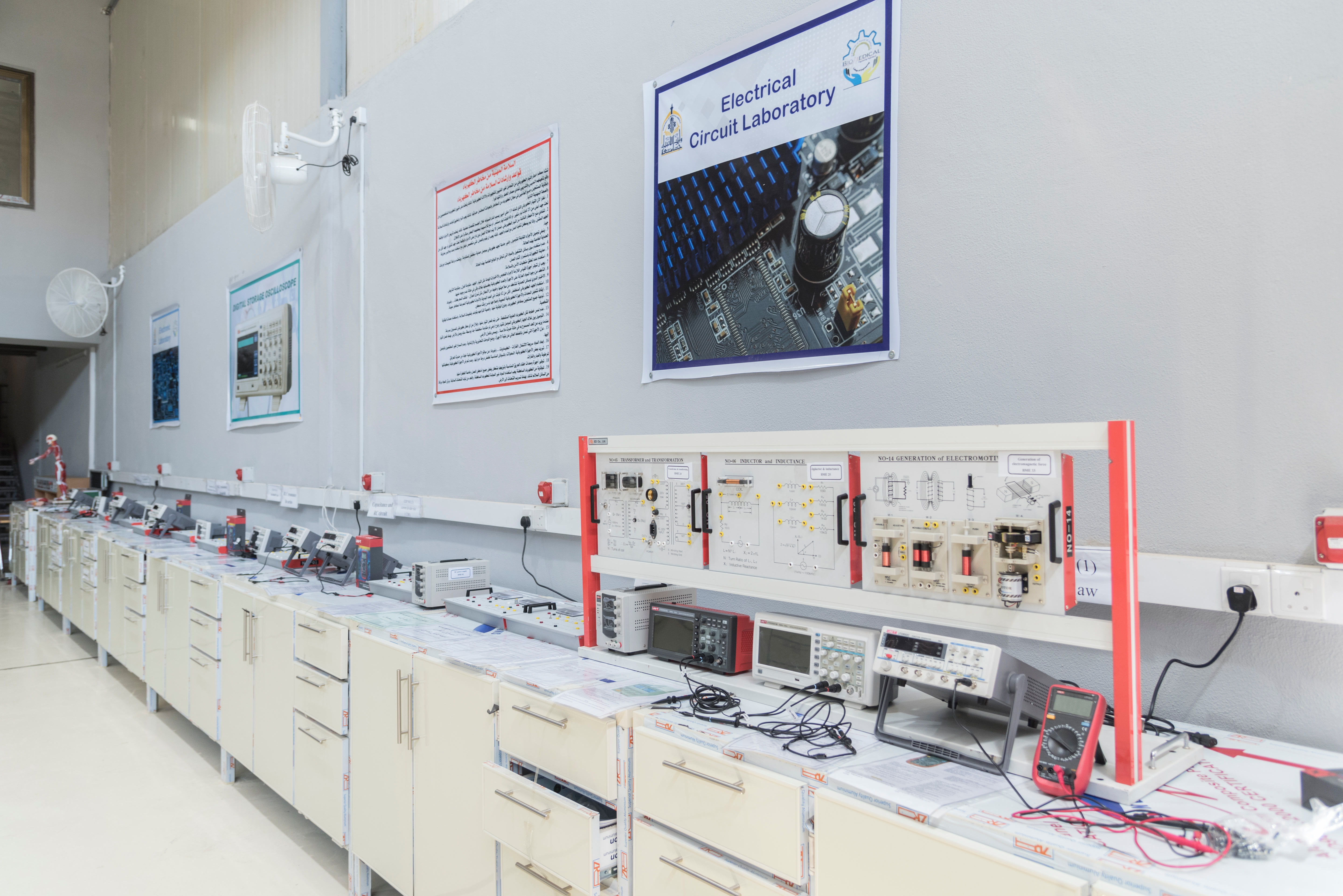 يتضمن مختبر الكهربائية للمرحلة الاولى الاطلاع على الاجهزة الكهربائية و معرفة مكوناتها و كيفية ربط الائرة الكهربائية و تشغيلها و تعلم قراءة هذة الاجهزة المختبرية المتعددة لقياس المقاومة و الفولتية و التيارات الكهربائية المستمرة و المتناوبة بالاضافة الى مجموعة متكاملة من العناصر الكهربائية للازمة لتنفيذ التجارب العلمية الخاصة بتجارب الدوائر الكهربائية و التي تساهم في تطوير مهارات الطالب العلمية و تدعم الجانب النظري لة. ويهدف هذا المختبر ايضا الى تمكين الطالب من اكتساب كافة المهارات الاساسية في كيفية بناء الدوائر الكهربائية و كيفية استخدام اجهزة الفحص .
