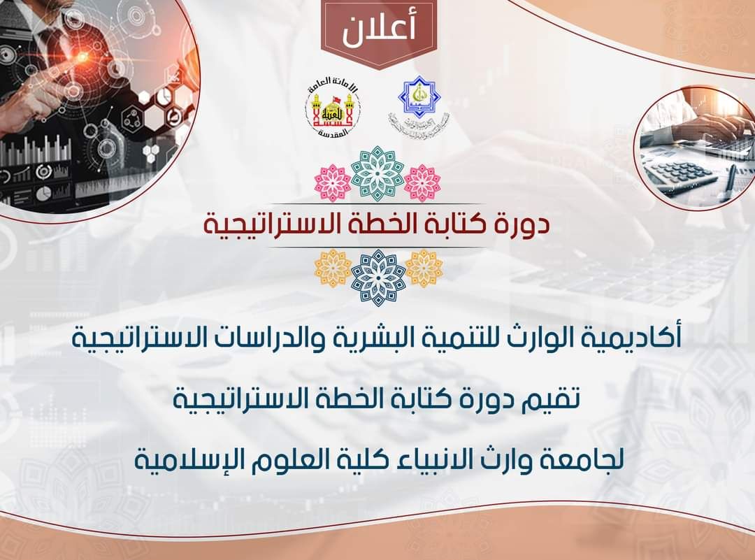 تقيم كلية العلوم الإسلامية بالتعاون مع أكاديمية وارث للتنمية البشرية دورة بعنوان ( التخطيط الاستراتيجي) لكادرها التدريسي وذلك في يوم الاثنين الموافق ٣١ / ٥ ولغاية ٢ / ٦ / ٢٠٢١