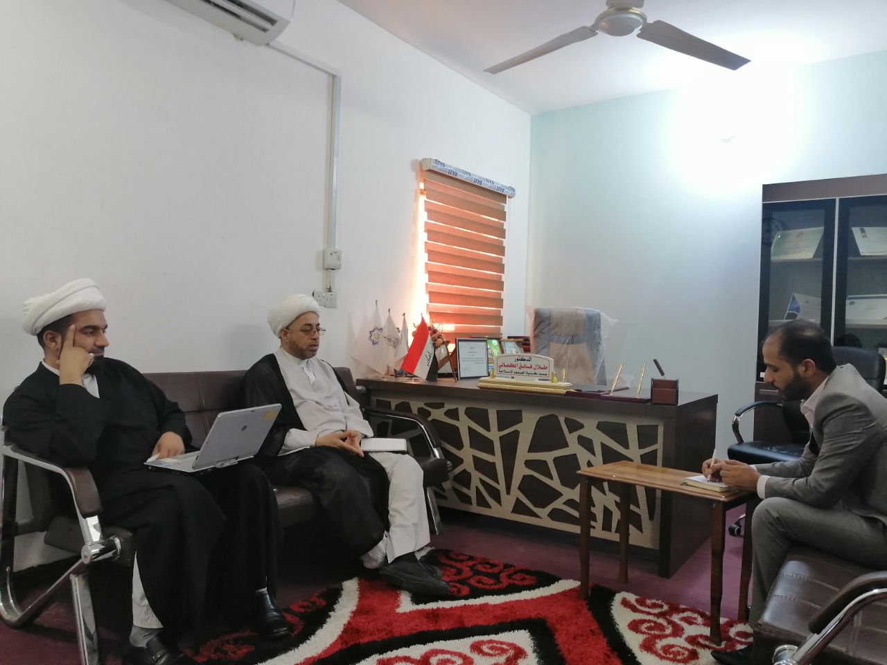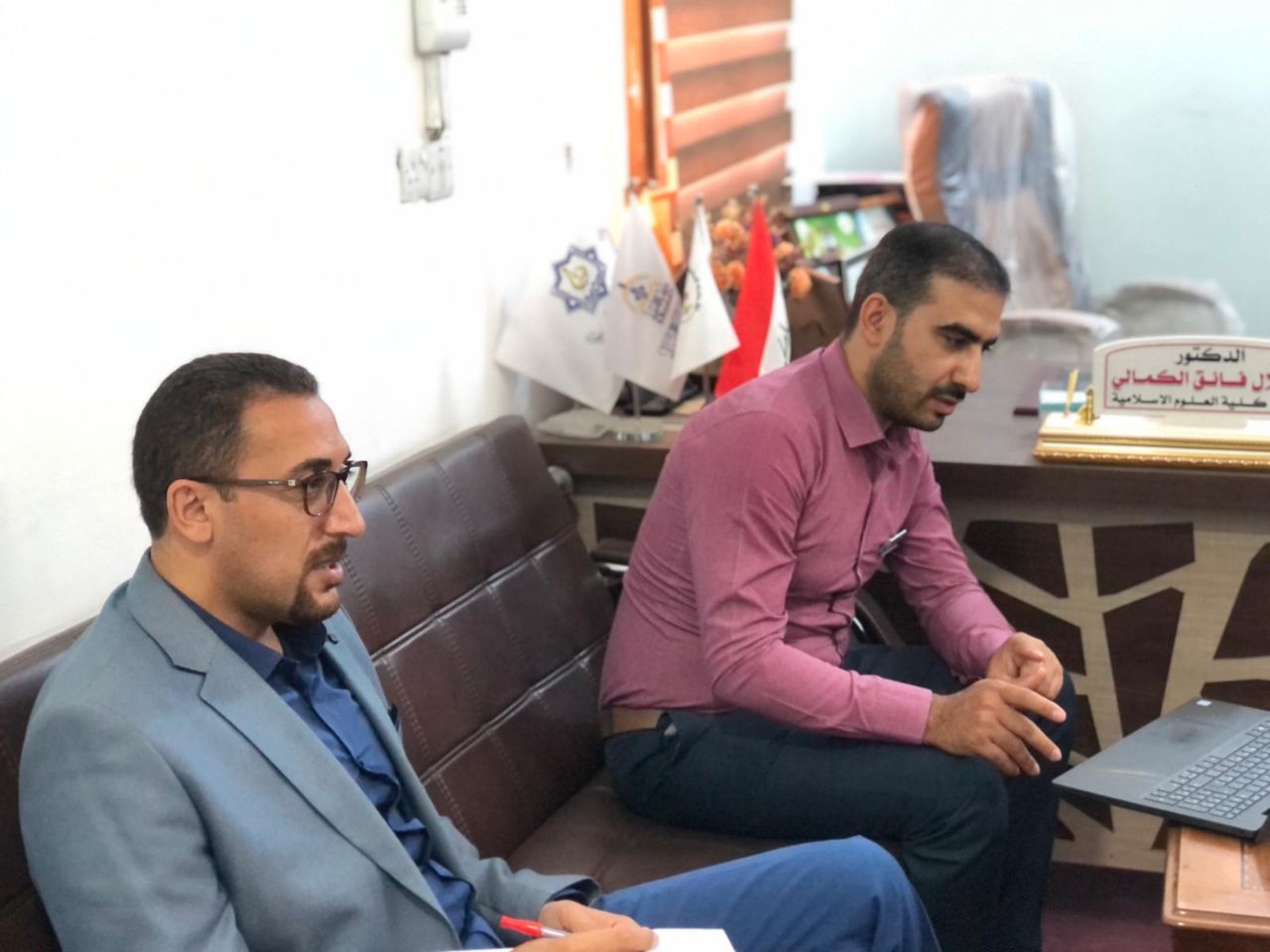 اجتمع السيد عميد كلية العلوم الإسلامية أ.م.د طلال الكمالي مع السادة أعضاء الهيئة التدريسية ورئيسي القسمين في الكلية للتداول في شؤون العملية التدريسية ومناقشة نسب انجاز الاساتذة لمفردات المواد الدراسية ومراحل إنجاز أعمال اللجان العلمية والتنموية والإدارية في الكلية. وضرورة العمل بجدية من أجل إنجاح العملية التعليمية وفق ما يحقق الطموح العلمي والأكاديمي المرجو... وفي ختام الاجتماع وجه السيد العميد شكره وامتنانه لما يبذلوه الاساتذة من جهد في خدمة المسيرة العلمية والتعليمية.
