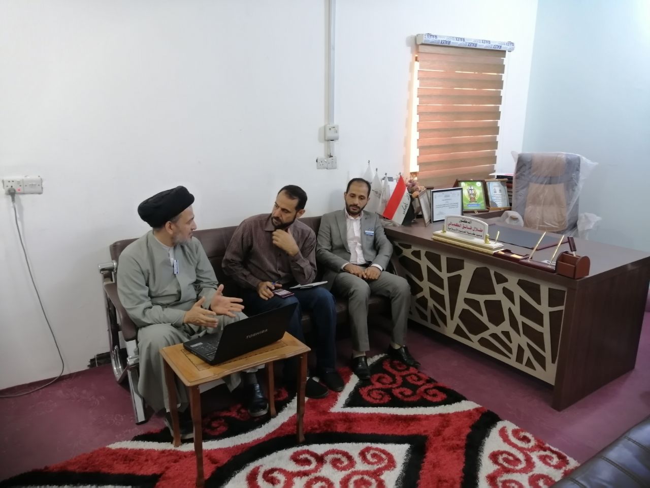 اجتمع في يوم الأحد الموافق ١٣ / ٦ / ٢٠٢١ أعضاء اللجنة الخاصة بـ(مؤتمر شريف العلماء) الذي يقميه مركز إحياء التراث الثقافي والديني التابع لقسم الشؤون الفكرية والثقافية في العتبة الحسينية المقدسة بالتعاون مع كليتي العلوم الاسلامية/ جامعة كربلاء و وارث الأنبياء (ع)، ضم الاجتماع كل من رئيس قسم الشؤون الفكرية والثقافية سماحة الشيخ رائد الحيدري (دام توفيقه)، ومسؤول المركز الاستاذ احسان خضير الجليحاوي، وعميد كلية العلوم الإسلامية في جامعة وارث الانبياء (ع) الدكتور طلال فائق الكمالي، وعميد كلية العلوم الاسلامية في جامعة كربلاء الدكتور ضرغام الموسوي برفقة الدكتور محمد حسين الطائي والدكتور محمد ناظم المفرجي. حيث ناقش المجتمعون الاستعدادات والتحضيرات اللازمة لإقامة هذا المؤتمر المزمع انعقاده بتاريخ 20-1-2022م في العتبة الحسينية المقدسة على قاعة خاتم الأنبياء (ص).لمعرفة المزيد عن المؤتمر يرجى الضغط على الرابط التالي:https://imamhussain.org/heritage/32639