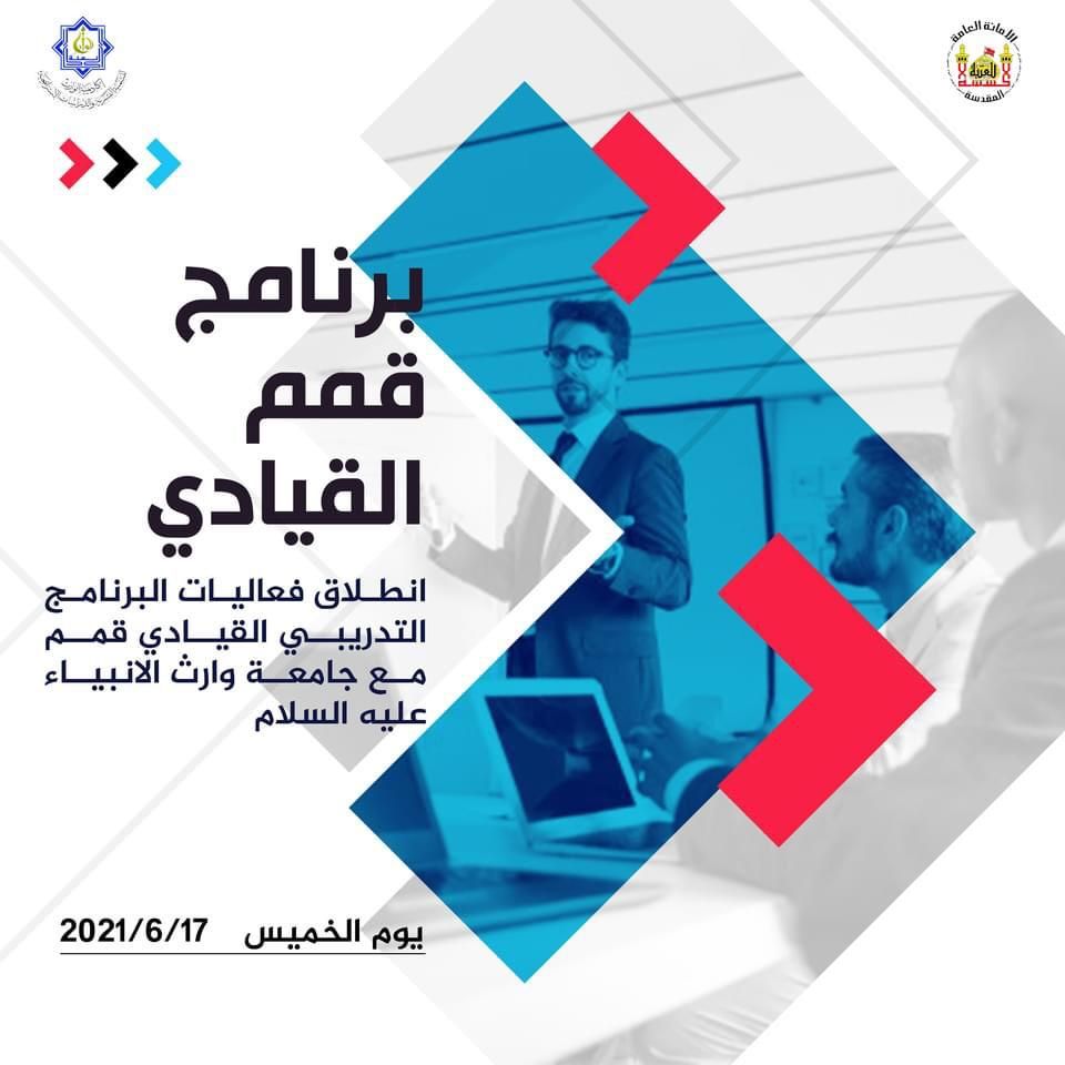 قريبا ..انطلاق فعاليات برنامج قمم التدريبي تعلن كلية العلوم الإسلامية في جامعة وارث الانبياء عن موعد انطلاق برنامج قمم التدريبي والذي تقدمه بالتعاون مع أكاديمية الوارث للتنمية البشرية والدراسات الإستراتيجية. الجهة المستهدفة طلبة جامعة وارث الانبياء عليه السلام... موعدنا الخميس ١٧/٦/٢٠٢١