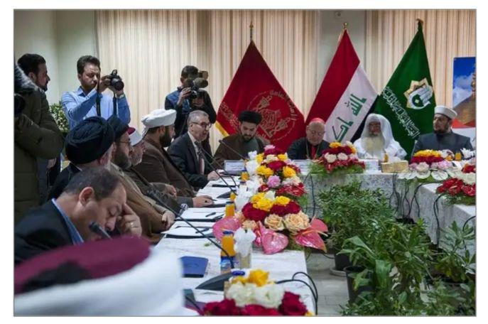 واشار كذلك الى ان " الملتقى شهد حضور زعيم الكلدانيين وزعيم الصابئة المندائيين وممثل الايزيدين ومسؤول المجمع الفقهي العراقي وامام جامع ابو حنيفة النعمان وجمع من فضلاء الحوزة العلمية في النجف الاشرف".