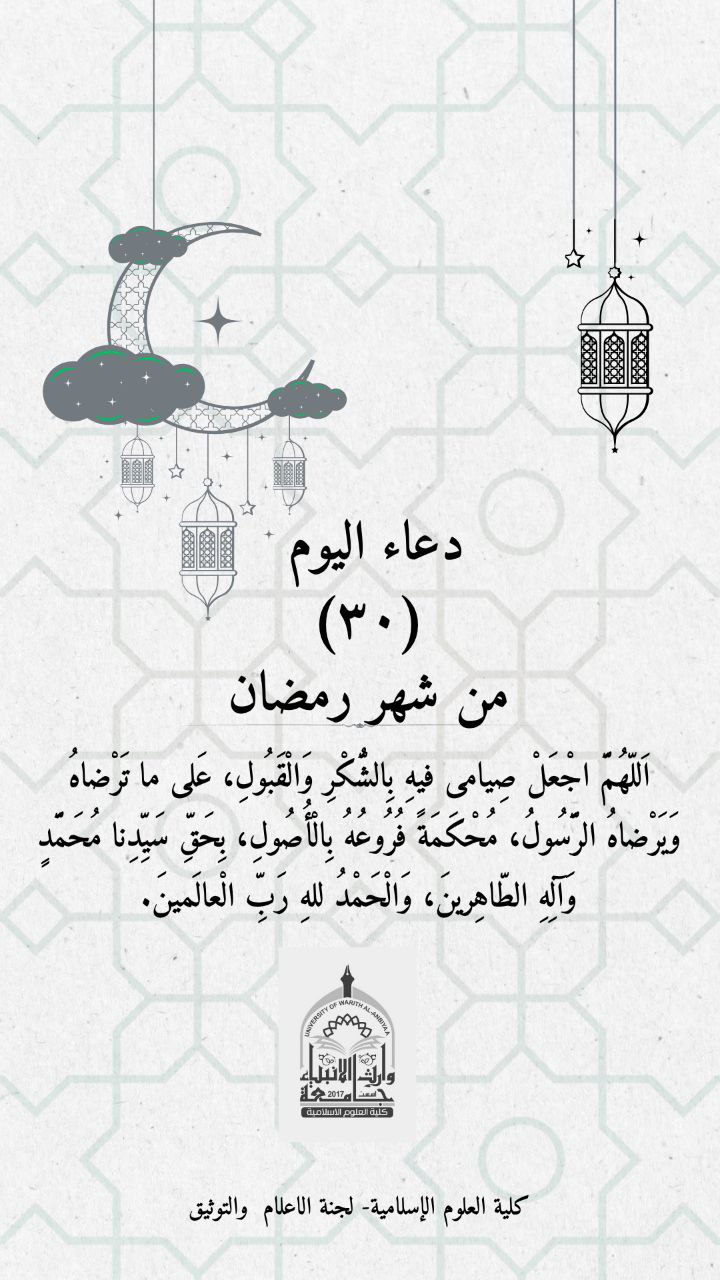 دعاء اليوم الثلاثين  من شهر رمضان المبارك