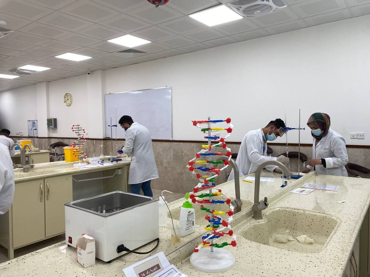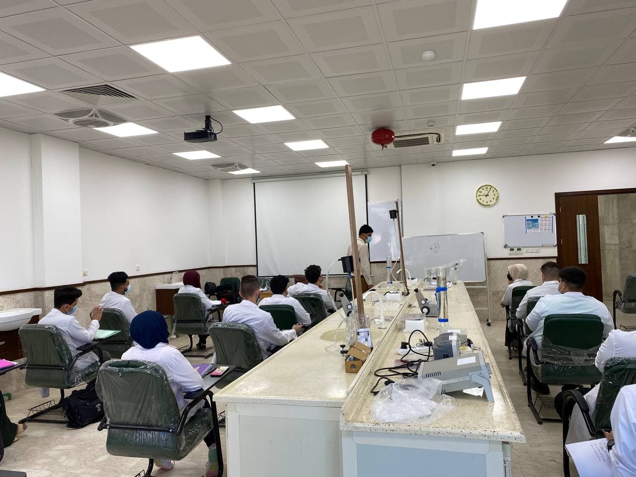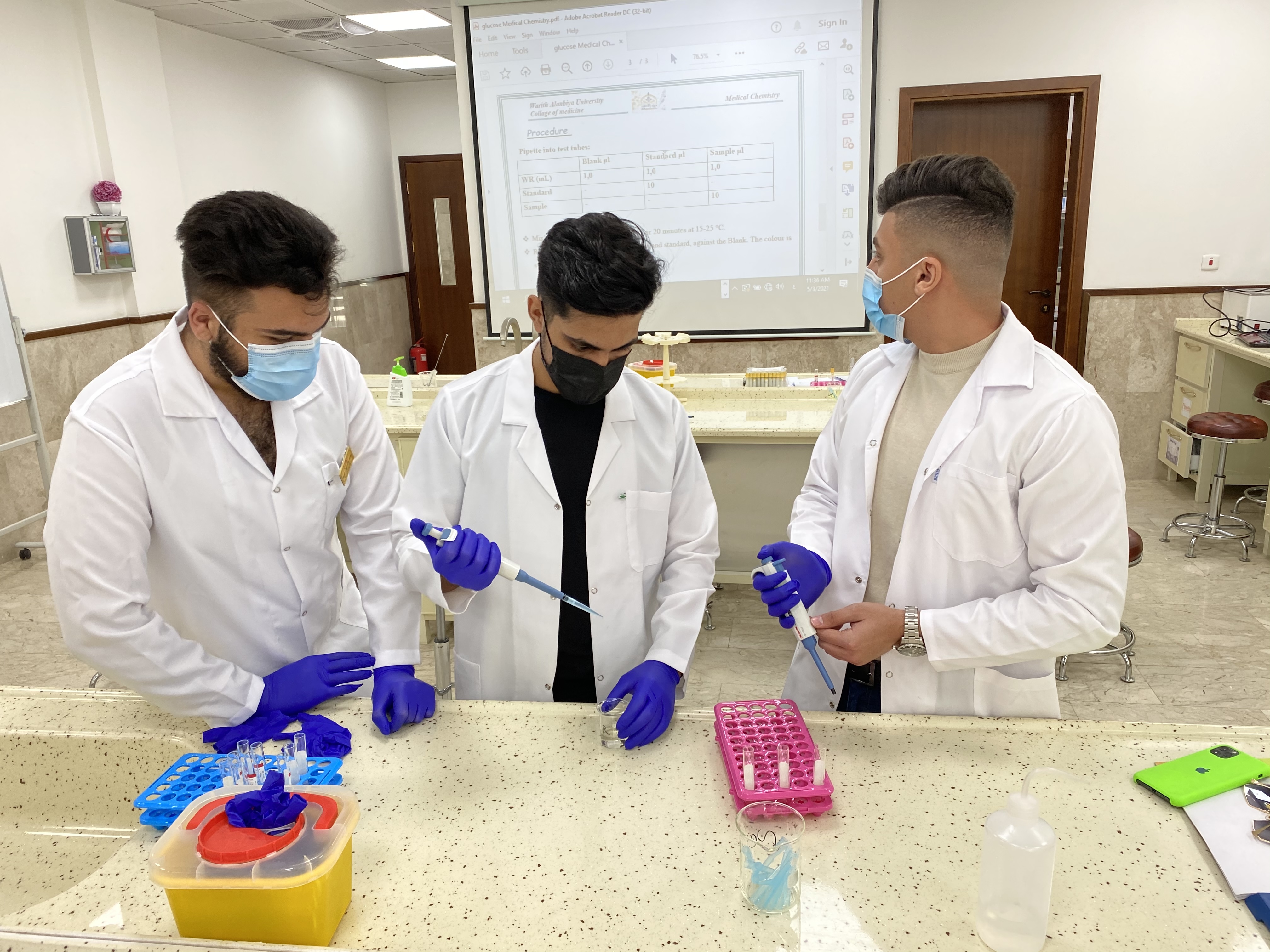 يواصلُ طلبة كلية الطب في جامعة وارث الأنبياء (ع) اليوم الاثنين الموافق (3 / 5 / 2021 ) أخذ محاضراتهم العملية في مختبرات الكلية وأداء بعض التجارب الطبية المختبرية بإشراف السيد العميد المحترم و أساتذة وتدريسيي المواد العلمية في الكلية، وسط الإلتزام بإجراءات الوقاية الصحية وارتداء الكمامات للوقاية من عدوى الجائحة.