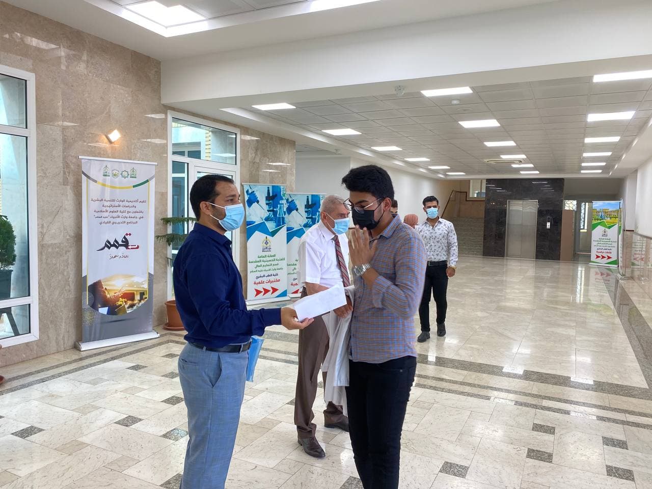 يواصلُ طلبة كلية الطب في جامعة وارث الأنبياء (عليه السلام) الامتحانات العملية، بإشراف السيد العميد الأستاذ الدكتور فالح البياتي المحترم و أساتذة وتدريسيي المواد العلمية في الكلية، مع الالتزام بتوجيهات خلية الأزمة بخصوص التباعد الاجتماعي وارتداء الكمامات. و زيارة  اللجنة الوزارية الخاصة بمتابعة الامتحانات النهائية  والمؤلفة من عدد من استاذة جامعة كربلاء برئاسة السيد رئيس جامعة كربلاء الاستاذ الدكتور باسم خليل السعيدي المحترم  كلية الطب جامعة وارث الانبياء (ع) لمتابعة الامتحانات الحضورية في الكلية.