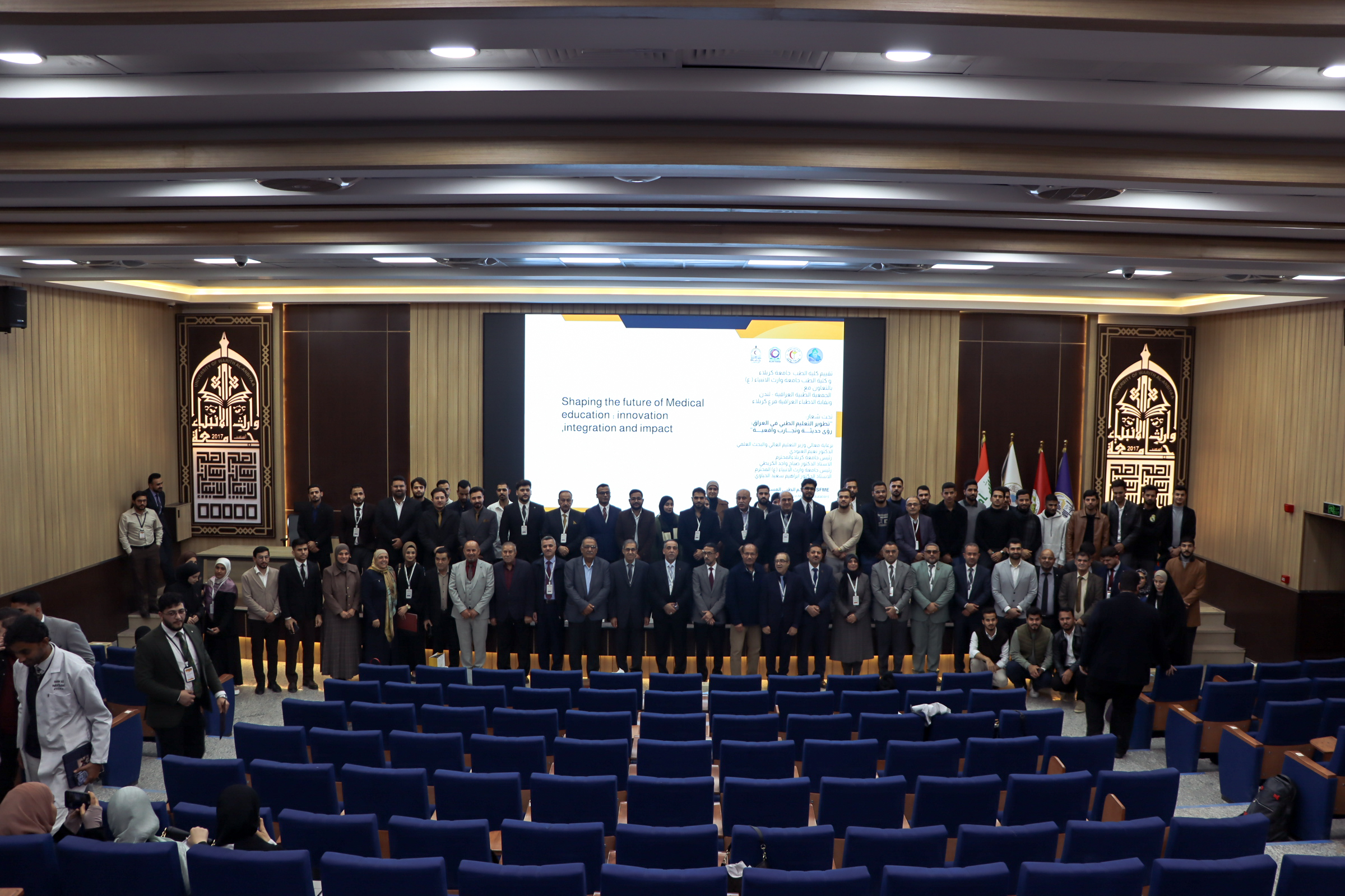 برعايةٍ كريمة من معالي وزير التعليم العالي والبحث العلمي الأستاذ الدكتور نعيم العبودي المحترم، وبإشرافٍ مباشر منالسيد رئيس جامعة كربلاء الأستاذ الدكتور صباح واجد الكريطي المحترم،والسيد رئيس جامعة وارث الأنبياء (ع) الأستاذ الدكتور إبراهيم سعيد الحياوي المحترم،اختُتمت على بركة الله أعمال المؤتمر الدولي للتعليم الطبي، والذي أُقيم تحت شعار:“تطوير التعليم الطبي في العراق: رؤى حديثة وتجارب واقعيةوقد نظّم المؤتمر كلية الطب – جامعة كربلاء وكلية الطب – جامعة وارث الأنبياء (ع)، بالتعاون مع الجمعية الطبية العراقية – لندن ونقابة الأطباء العراقية / فرع كربلاء، وبمشاركة نخبة من الأكاديميين والخبراء والباحثين من داخل العراق وخارجه.شهد المؤتمر جلسات علمية متميزة ومحاضرات نوعية ناقشت أحدث الاتجاهات العالمية في التعليم الطبي، وسبل تطوير المناهج، واعتماد التعليم الطبي المستمر، وربط الجانب الأكاديمي بالتطبيقات العملية بما يسهم في الارتقاء بمستوى مخرجات كليات الطب وخدمة المجتمع.وفي ختام المؤتمر، قام السيد عميد كلية الطب المحترم بتكريم السادة المحاضرين والمشاركين، تثمينًا لجهودهم العلمية وإسهاماتهم القيّمة في إنجاح فعاليات المؤتمر، حيث جرى تقديم شهادات تقديرية تعبيرًا عن الامتنان للدور العلمي والفكري الذي قدّموه، والذي كان له الأثر الواضح في تحقيق أهداف المؤتمر وتعزيز قيم التعاون الأكاديمي المشترك.إن هذا المؤتمر يُعد خطوة مهمة في مسيرة تطوير التعليم الطبي في العراق، ويعكس حرص المؤسسات الأكاديمية والطبية على مواكبة التطورات العلمية العالمية، وترسيخ مفهوم التعليم الطبي المستدام (SFME – Sustainable Future in Medical Education).وفي الختام، تتقدم عمادة كلية الطب بخالص الشكر والتقدير إلى جميع الجهات الداعمة، والمحاضرين، والباحثين، والمشاركين، واللجان التنظيمية والعلمية، متمنين دوام التوفيق والعطاء العلمي لما فيه خدمة التعليم العالي وطلبتنا الأعزاء.
