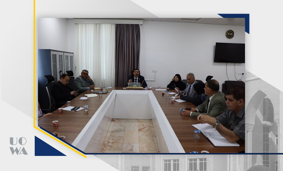 عقد مجلس كلية طب وارث الأنبياء جلسته الاعتيادية بحضور السيد عميد الكلية الأستاذ الدكتور علي عبد سعدون الغزي، والسيد المعاون العلمي الدكتور ليث محمد الحسيني، والسيد المعاون الإداري الدكتور أنور دهان، إلى جانب رؤساء الفروع العلمية كافة.