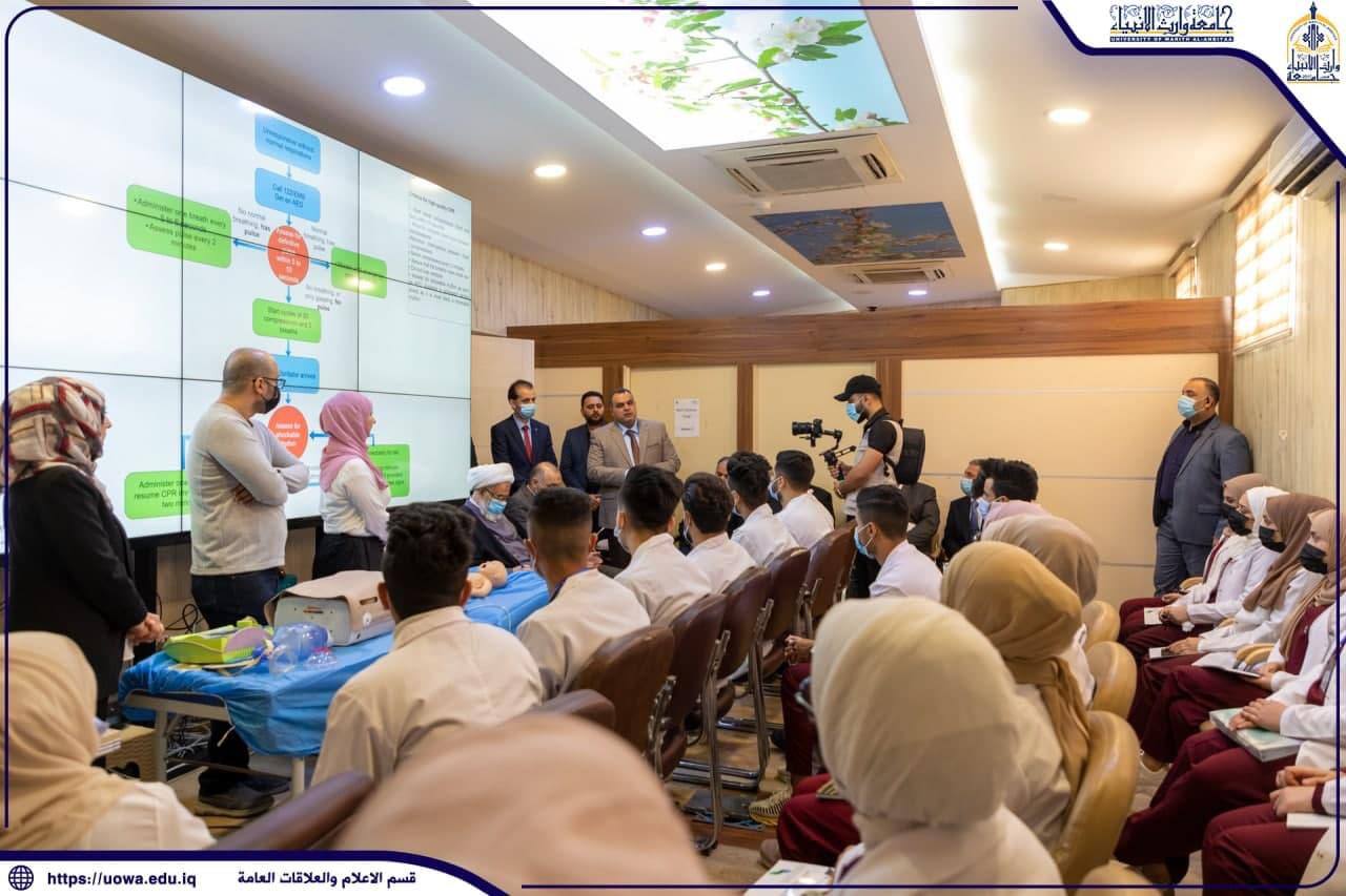 بحضور سماحة المتولي الشرعي للعتبة الحسينية المقدسة الشيخ عبد المهدي الكربلائي (دام عزه) والسيد رئيس الجامعة الاستاذ الدكتور ابراهيم الحياوي، أقامت كلية الطب وبإشراف هيئة الصحة والتعليم الطبي في العتبة الحسينية المقدسة، ورشة عمل لطلبة الكلية بعنوان (أساسيات انقاذ الحياة) ضمن المتطلبات العلمية لتطوير مهارات طلبة كلية الطب عبر الاستعانة بمدربين من أكاديمية طب الحشود والطوارئ.
