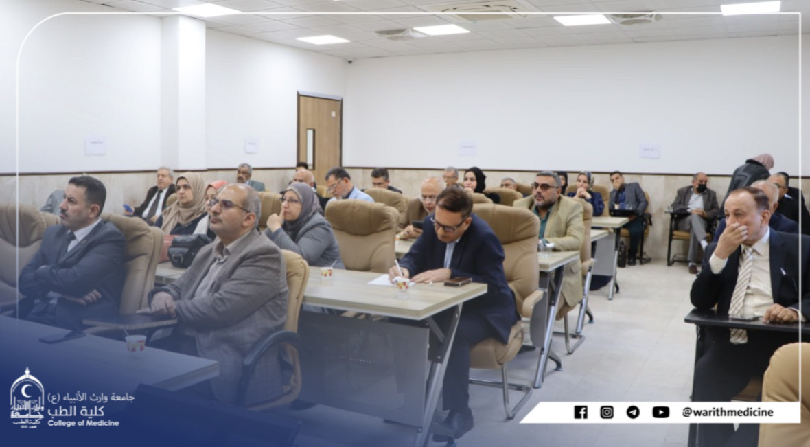 برعاية السيد رئيس جامعة وارث الانبياء عليه السلام الاستاذ الدكتور ابراهيم سعيد المحترم واشراف وحضور السيد عميد كلية الطب الاستاذ الدكتور علي عبد سعدون المحترم اقامت كلية الطب ندوة علمية بعنوان. how to design questions وحاضر فيها الاستاذ الدكتور علي عبد الرضا.