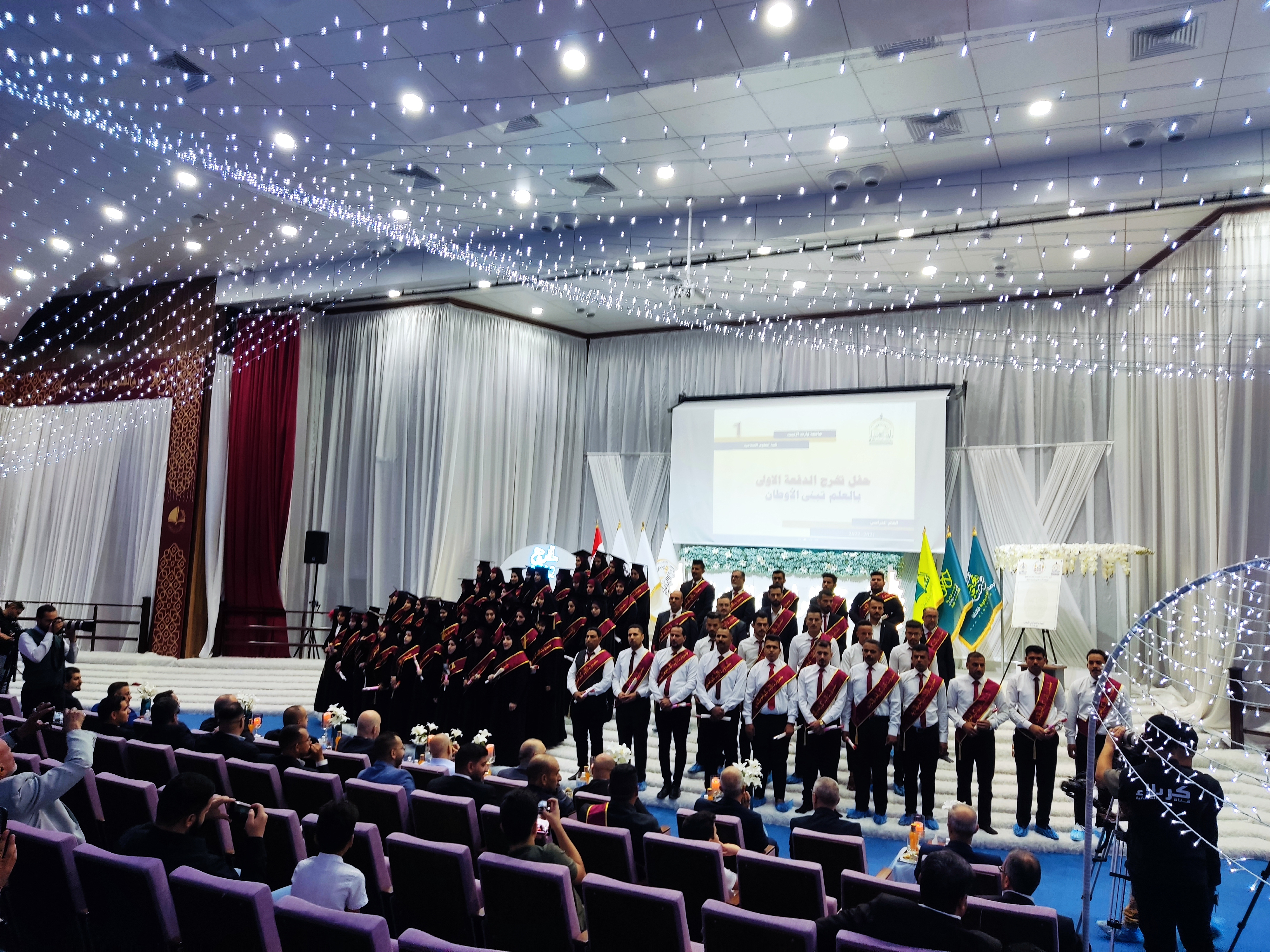 برعاية الامانة العامة للعتبة الحسينية المقدسة نظمت جامعة وارث الانبياء(عليه السلام) حفل تخرج للدفعة الأولى من طلبتها الاعزاء في كلية العلوم الاسلامية بقسميها علوم القران و الفقه واصوله.حيث جرى الحفل البهيج في الصحن الحسيني الشريف، بحضور عميد الكلية الاستاذ المساعد الدكتور طلال الكمالي والسادة والسيدات اعضاء هيئة التدريس .اذ ردد الطلبة قسم التخرج أمام ضريح سيد الشهداء الامام الحسين(عليه السلام)، من أجل الامتثال للواجب الوطني والإنساني على أتم وجه، ونشر العلم والمعرفة والاخلاص والالتزام باخلاقيات العمل، وحمل رسالة الامام الحسين عليه السلام والعتبة الحسينية المقدسة في جعل خريجيها متميزين على كافة الصعد ومثالا يحتذى به.