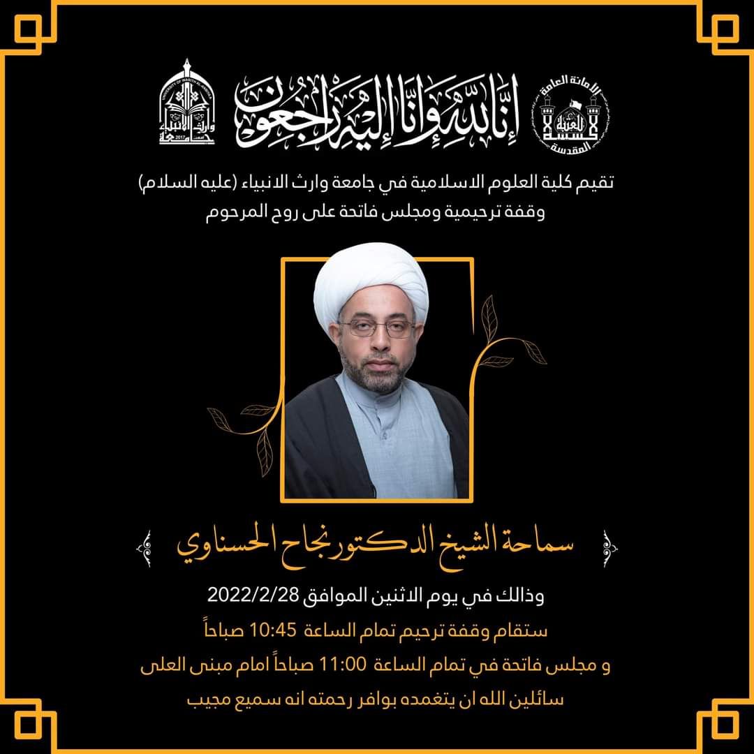 وذلك على قاعة الامام الحسين يومي الاحد والاثنين (6-7 / 3 / 2022) الساعة العاشرة صباحاً، بمشاركة الخطيب الحسيني سماحة الشيخ زمان الحسناوي والرادود الحسيني ملا أحمد صديق.