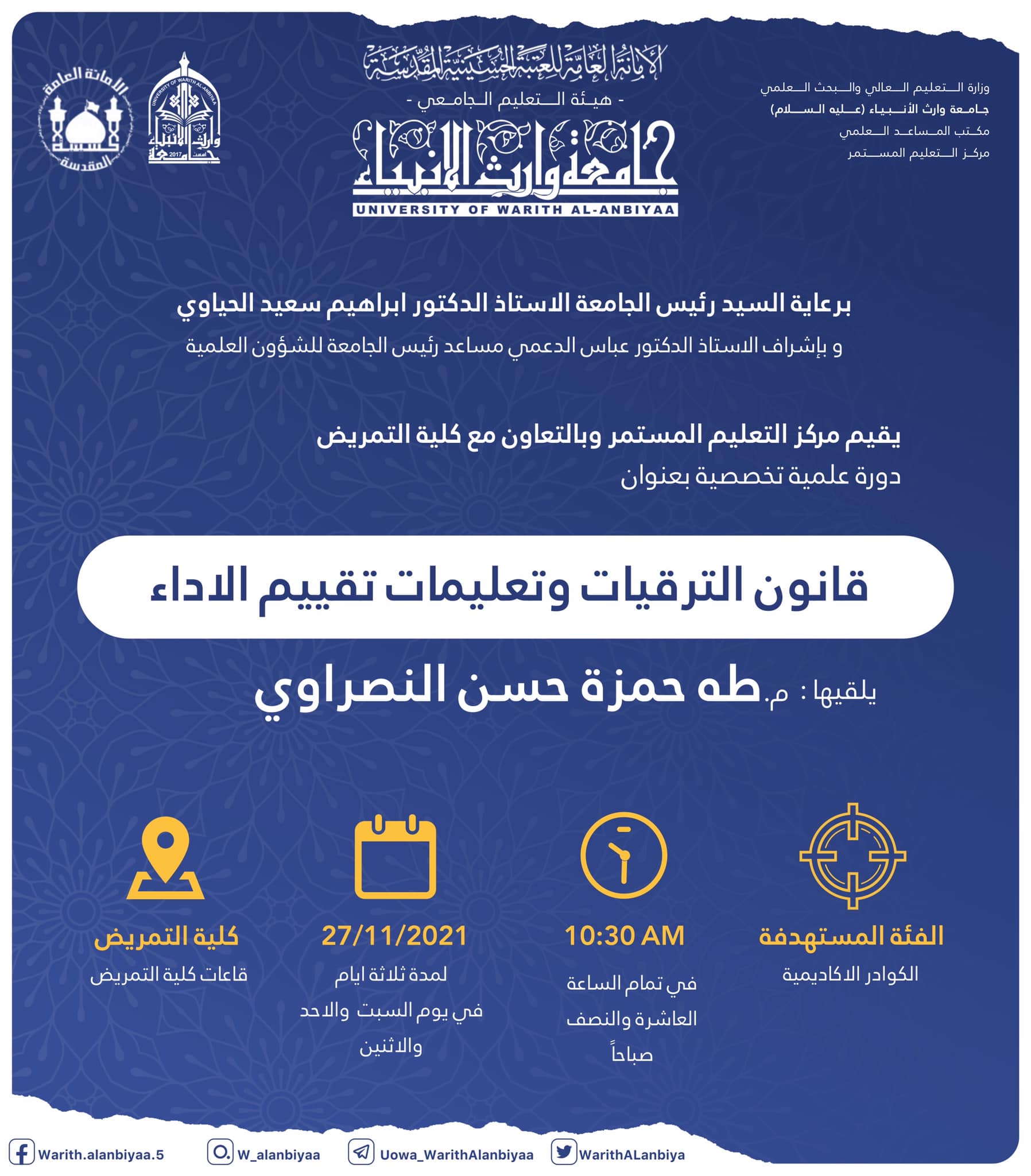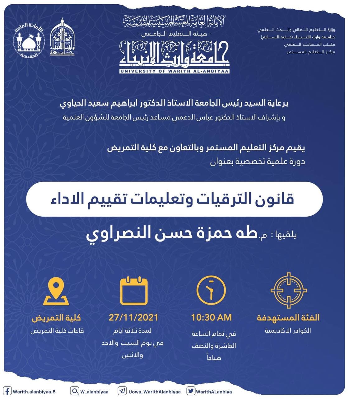 اقام مركز التعليم المستمر في جامعة وارث الانبياء (عليه السلام) بالتعاون مع كلية الهندسة / قسم الهندسة المدنية دورة تدريبية حول المسوحات الهندسية ، حاضر في الدورة (م.م. ياسر نعمة) و تحدث قائلاً تضمنت الدورة جزئين هما :