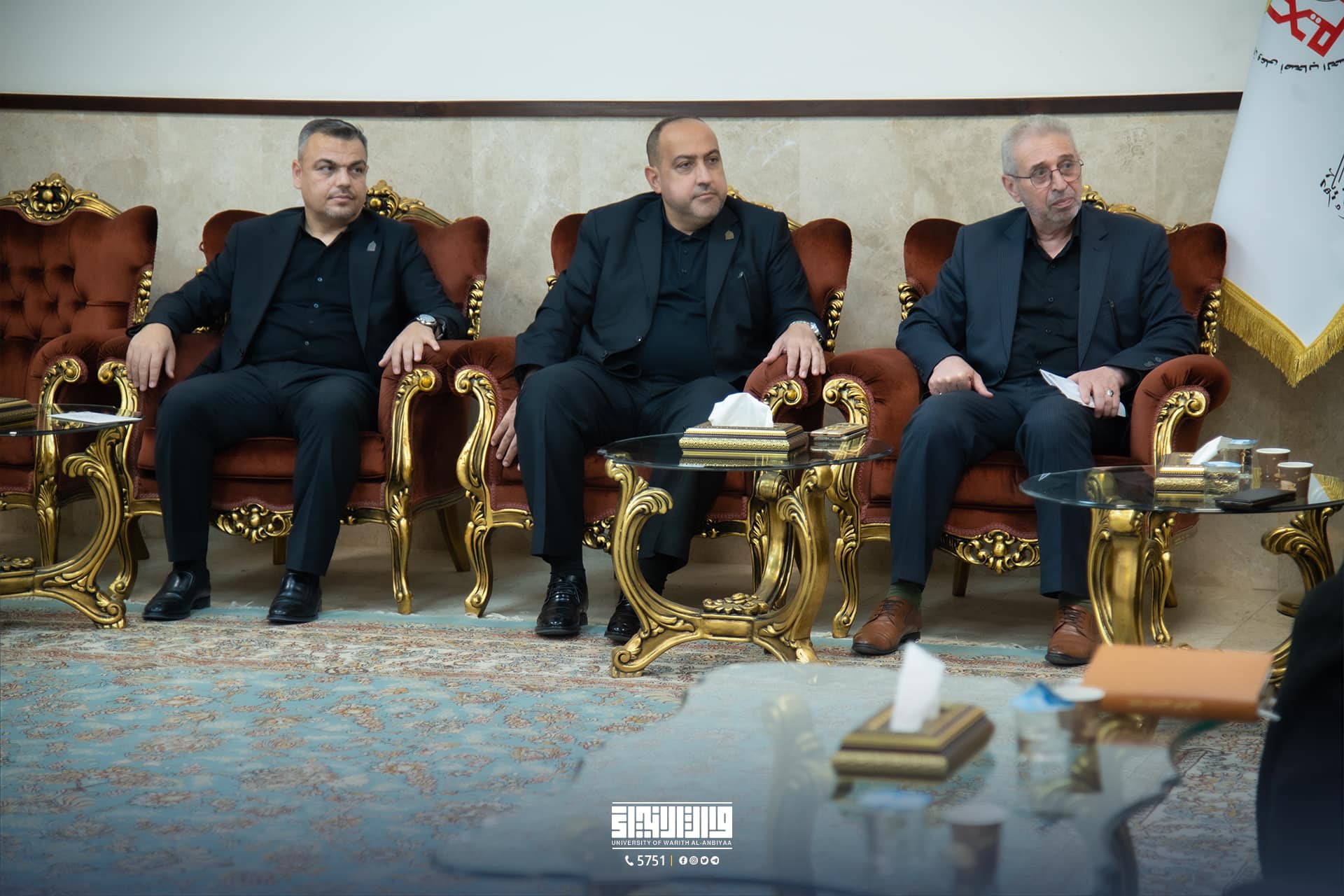 استقبل السيد رئيس جامعة وارث الأنبياء (عليه السلام)، الأستاذ الدكتور إبراهيم سعيد الحياوي، برفقة الأستاذ الدكتور واقد الموسوي، مساعد رئيس الجامعة للشؤون العلمية، والأستاذ المساعد الدكتور طلال فائق الكمالي، عميد كلية العلوم الإسلامية، وفد اللجنة العلمية التابع لمؤسسة وارث الأنبياء للدراسات التخصصية في النهضة الحسينية التابعة للعتبة الحسينية المقدسة.