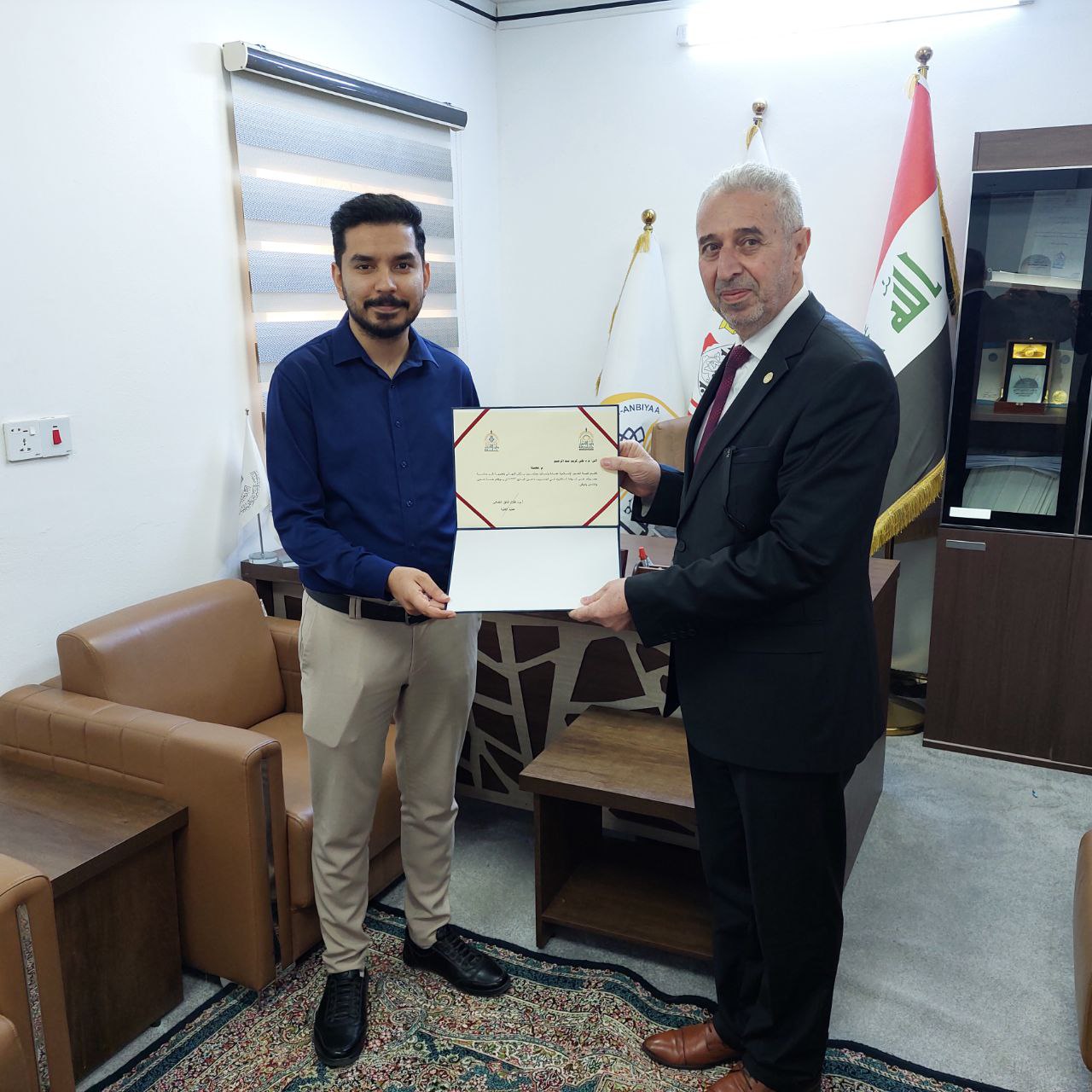 تتقدم اسرة كلية العلوم الاسلامية المتمثلة بعميدها الدكتور طلال َالكمالي والاساتذة الافاضل والمنتسبين بتهنئة الدكتور علي كريم عبد الرحيم لحصوله على شهادة الدكتوراه وكذلك لحصوله على المركز الثالث في جائزة وارث الأنبياء للتميز البحثينتمنى له دوام النجاح والموفقية