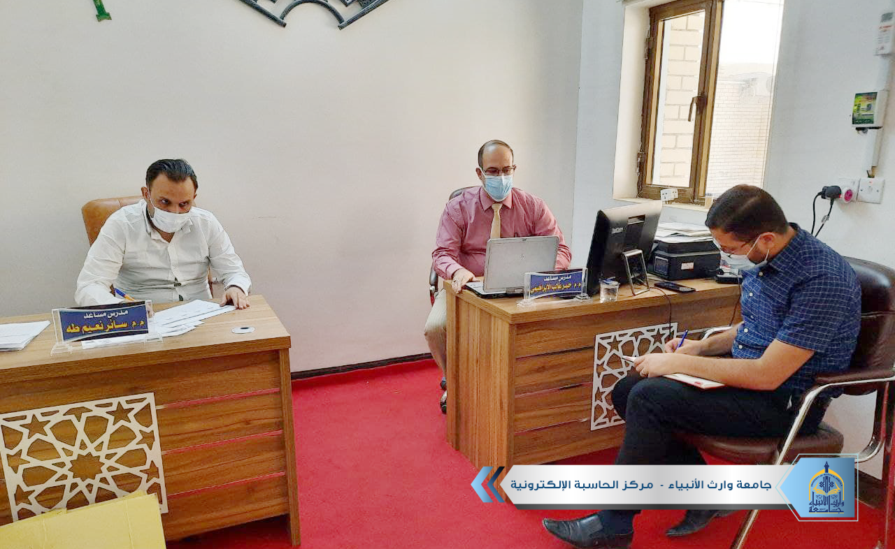 زار مركز الحاسبة الالكترونية كلية القانون بتاريخ (2021/7/3) و تم اللقاء بمسؤولي الموقع الالكتروني للكلية لتطوير الموقع الالكتروني و الانظمة الالكترونية في الجامعة وذلك بالاطلاع على التفاصيل التقنية التي تخص النشر الالكتروني و نظام هوية الطالب و نظام الجدول الالكتروني , وما هي المشاكل الموجودة و التطويرات التي حدثت على الموقع .