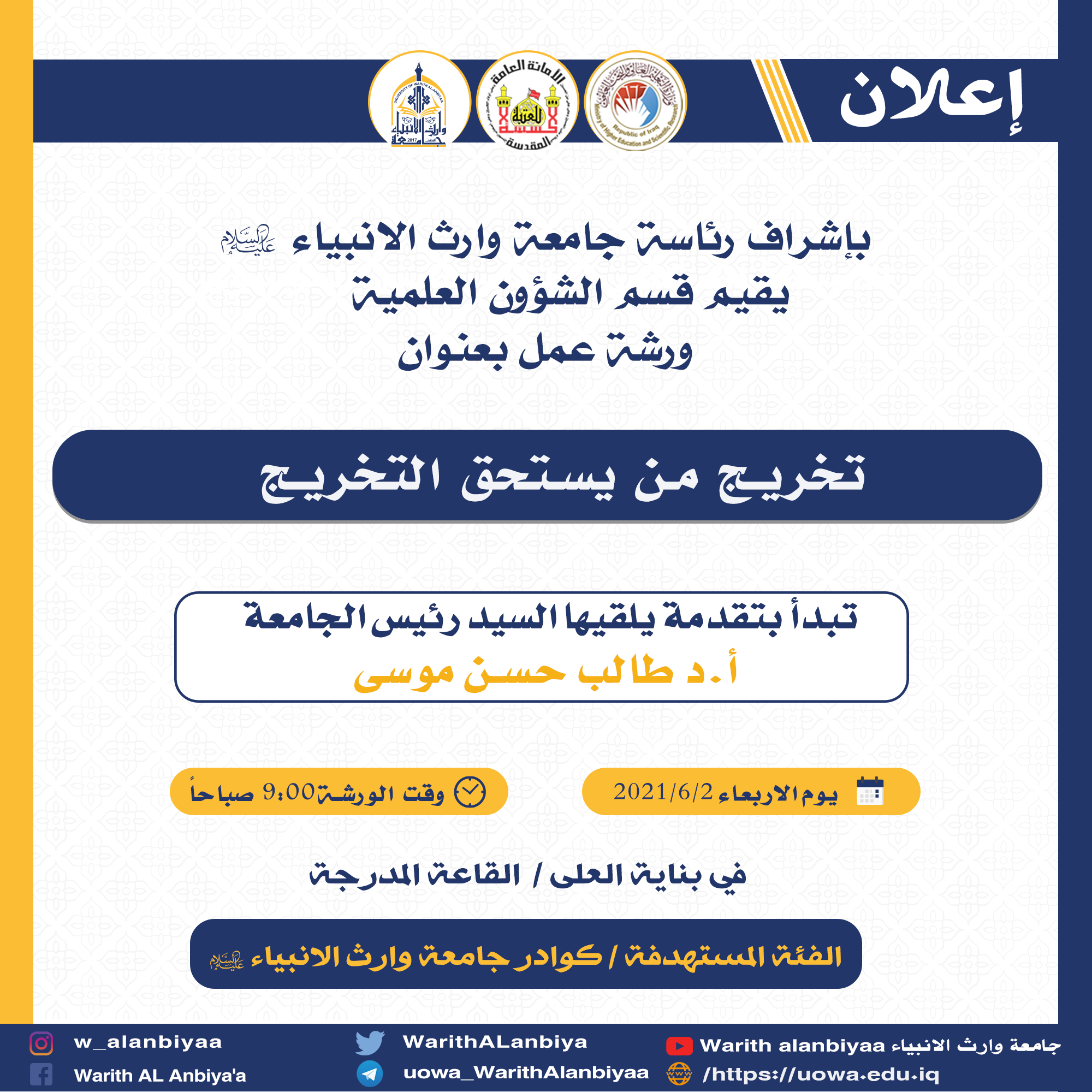 #هيئة_التعليم_العالي_والبحث_العلمي#جامعة_وارث_الانبياء_عليه_السلام#قسم_الاعلام_والعلاقات_العامة