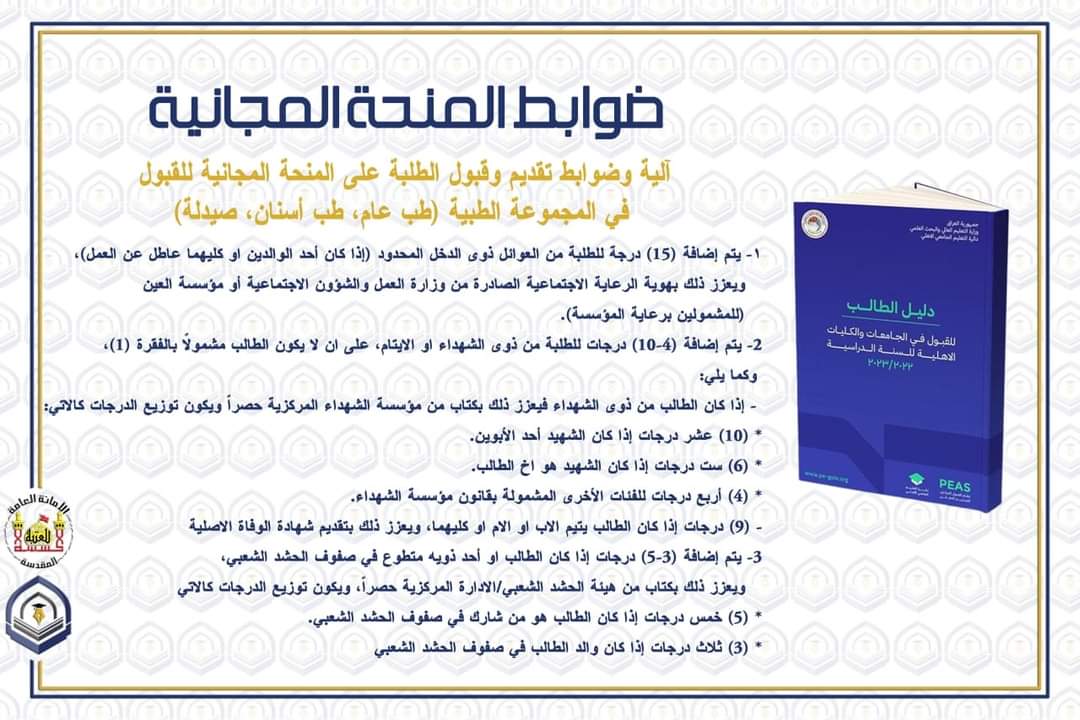 ضوابط ومحددات الحصول على المنحه المجانيه للعام الدراسي 2022_2023 لكلية الطب البشري