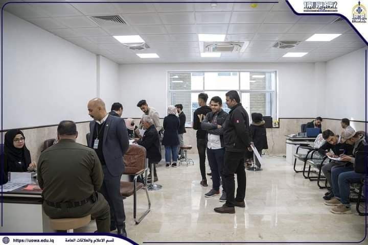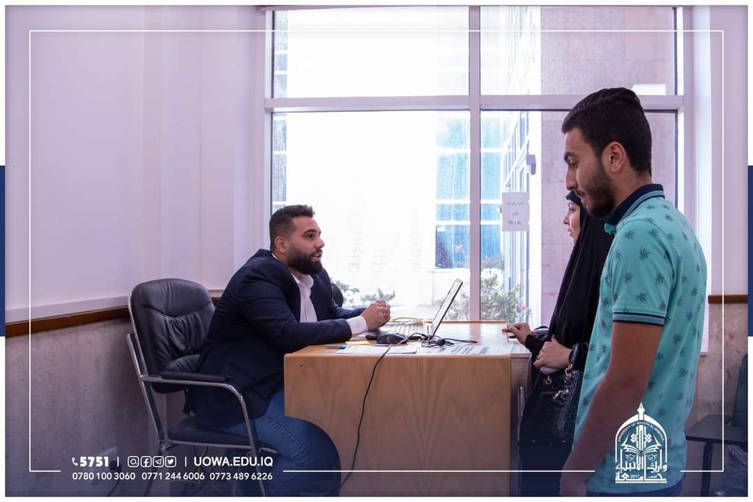 يواصل قسم التسجيل وشؤون الطلبة بجامعة وارث الأنبياء يوم الاثنين المصادف 12/19 استقباله للطلبة الأعزاء وأولياء الأمور الكرام الراغبين بالتقديم في كليات الجامعة لتقديم المساعدة والإرشاد والتوجيه الصحيح لتقديمهم عبر نافذة التقديم الألكترونية الوزارية وفقاً للخطوات الصحيحة المعلن عنها.