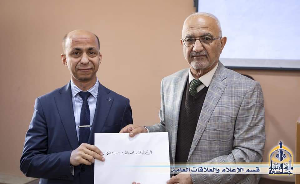 تكريم عميد كلية التمريض أ.م.د.خميس بندر من قبل كلية ابن حيان الجامعة خلال مشاركته في المؤتمر العلمي الذي اقيم في رحابها.