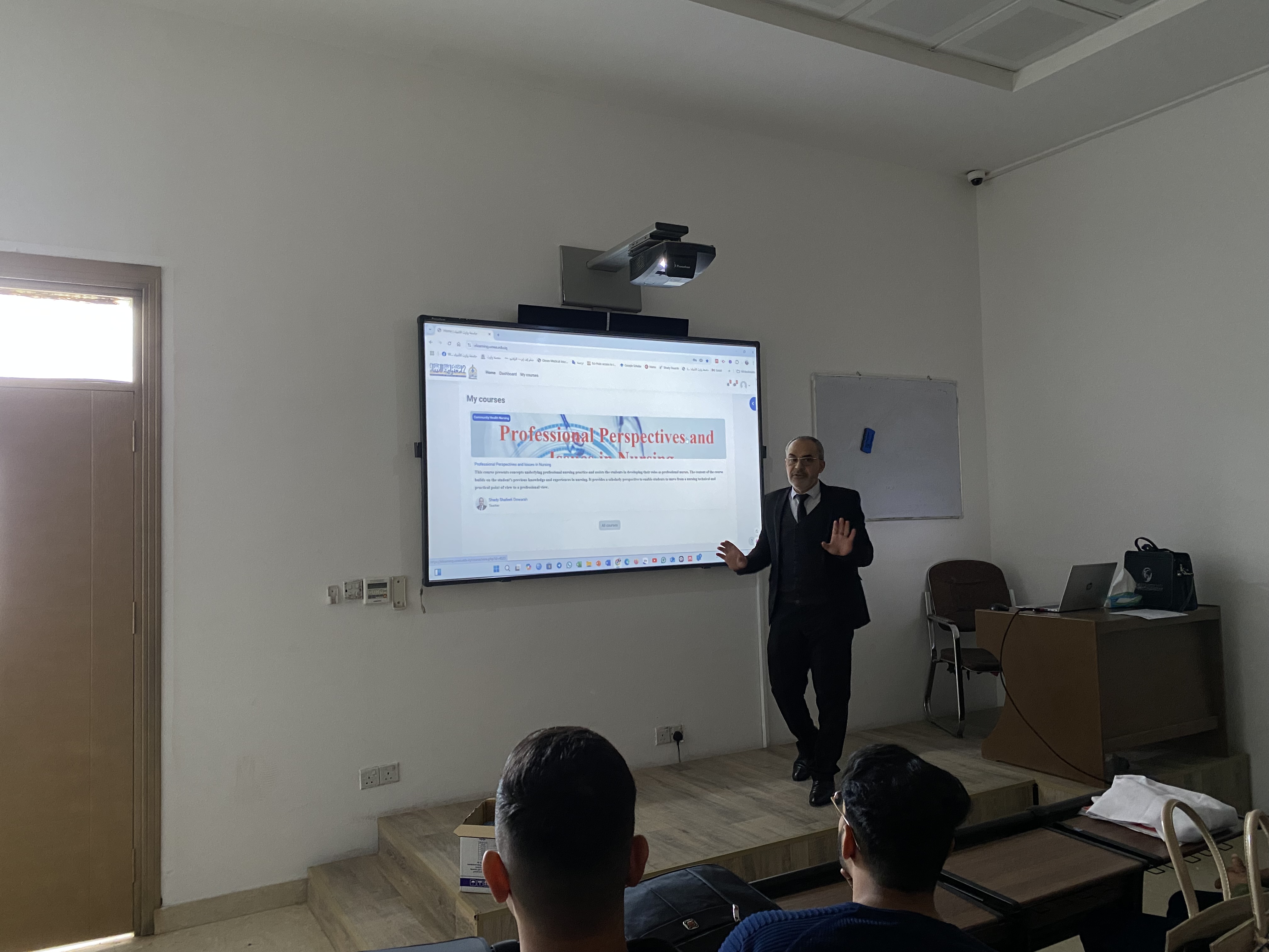 اقامة كلية التمريض بالتعاون مع قسم التعليم المستمر في جامعه وارث دورة تدريبة تستهدف طلبة المرحلة الاولى حول التعليم الالكتروني واسخدام منصة المودل حاضره في الدوره المدرس المساعد شادي شفيق دواره ستكون هذه الدورة فرصة ممتازة للطلاب للتعرف على أساليب التعليم الحديثة وكيفية استخدام المنصة لتعزيز تجربتهم التعليمية. نأمل أن يحضر جميع الطلبة المهتمين للاستفادة من المحتوى المقدم.